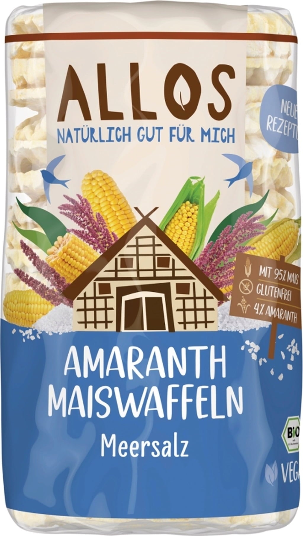 De ekologiska amarantmajsvåfflorna med havssalt från ALLOS smakar underbart krispigt och är det perfekta veganska mellanmålet för en kort paus mellan måltiderna. Majsvåfflorna är raffinerade med solrosolja och kan ätas som de är eller toppas med salta tillbehör.
