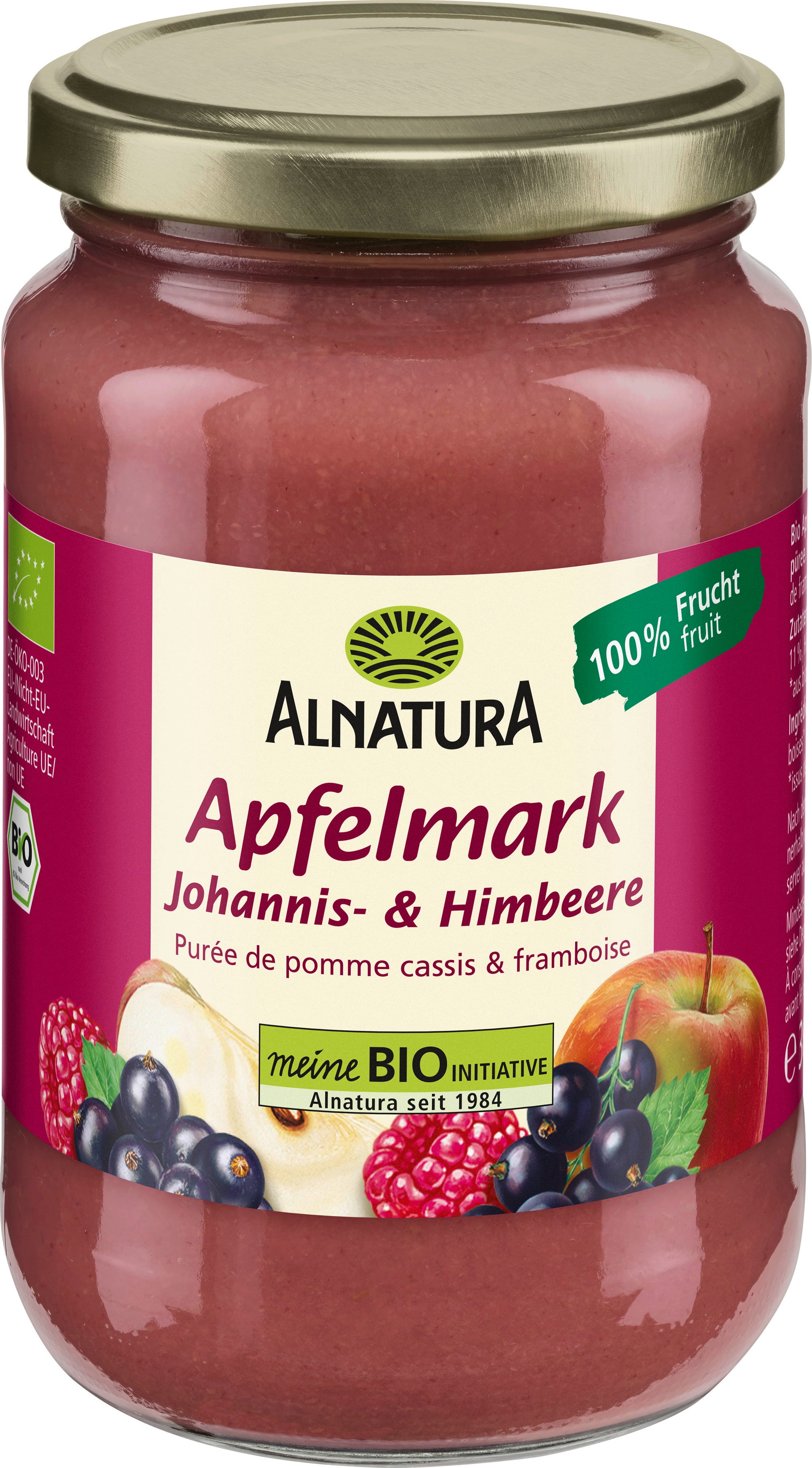 Alnatura ekologiskt äppelmos svartvinbär och hallon består till 100 % av frukt och övertygar med aromatisk smak av svartvinbär och hallon. Passar som dessert eller tillsammans med risgrynsgröt, pannkakor och mycket mer.