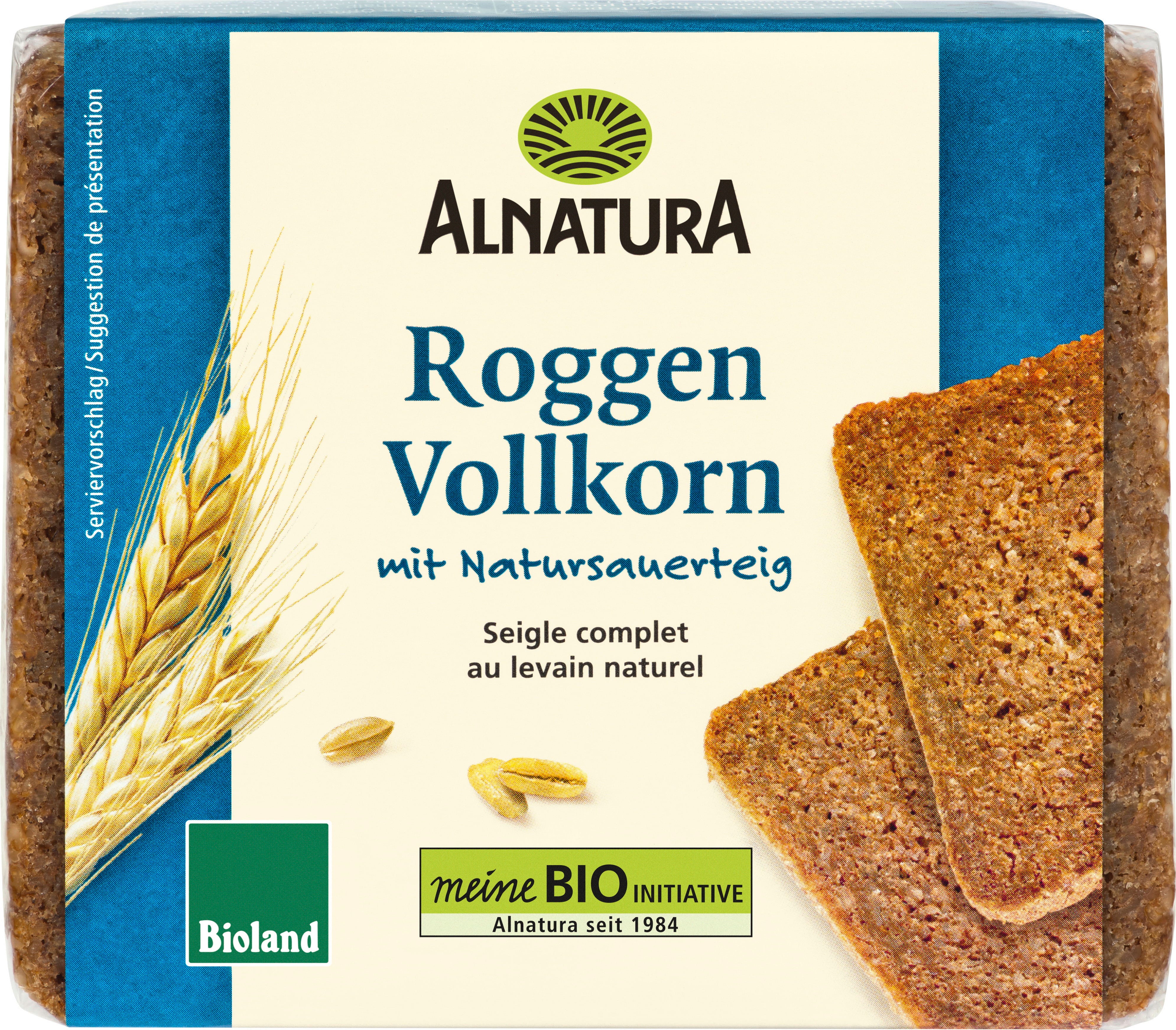 Detta rågfullkornsbröd från Alnatura bakas med naturlig surdeg. Det saftiga brödet har en kraftig och aromatisk smak och är redan skivat. Det passar utmärkt med både söta och salta pålägg.