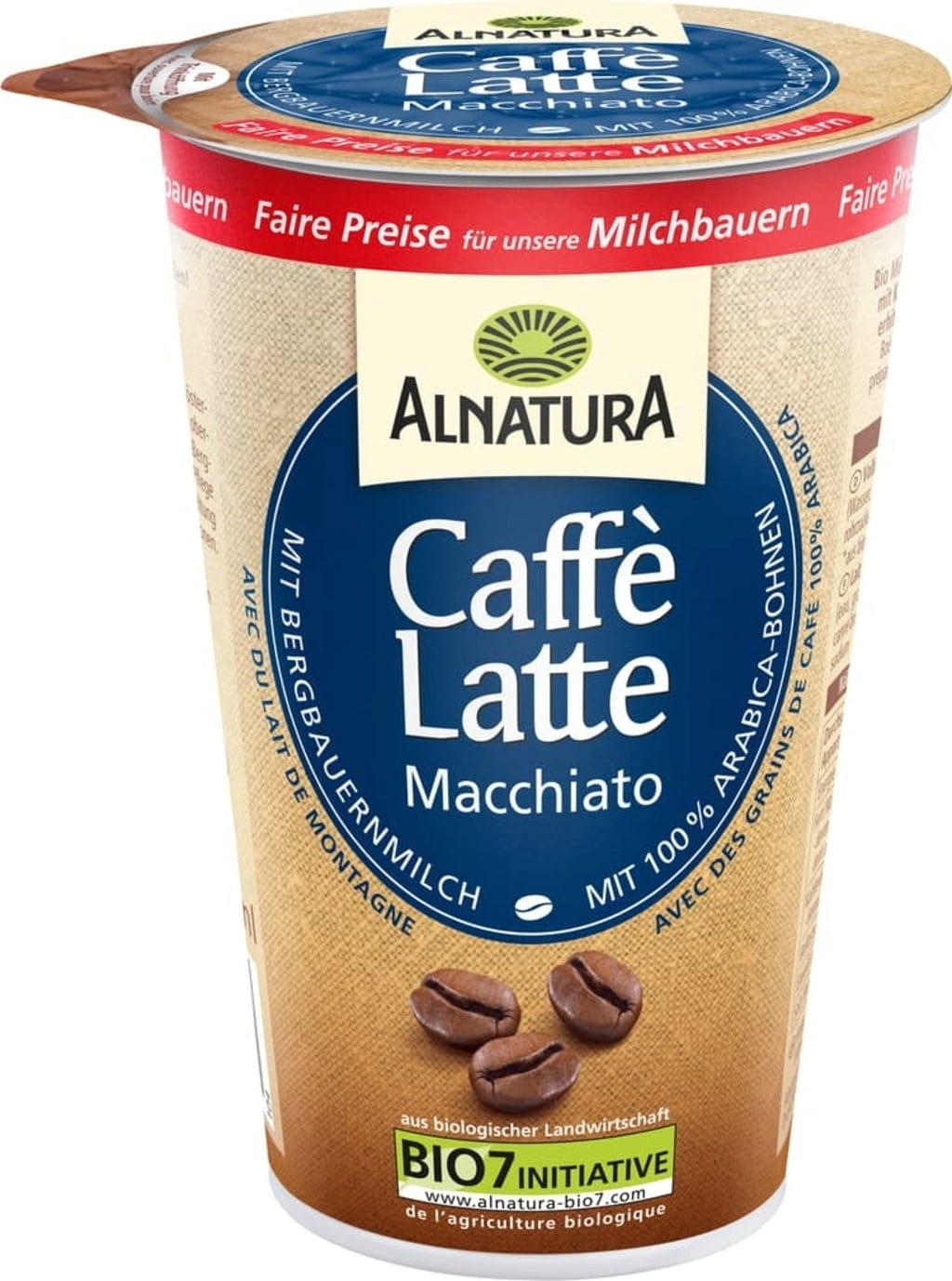 Alnatura caffè latte macchiato är en ekologisk kaffedryck perfekt att ta med. Drycken kombinerar österrikisk bergsbondemjölk och aromatiskt Arabica-kaffe till en behagligt mjölkig och söt smakupplevelse.
