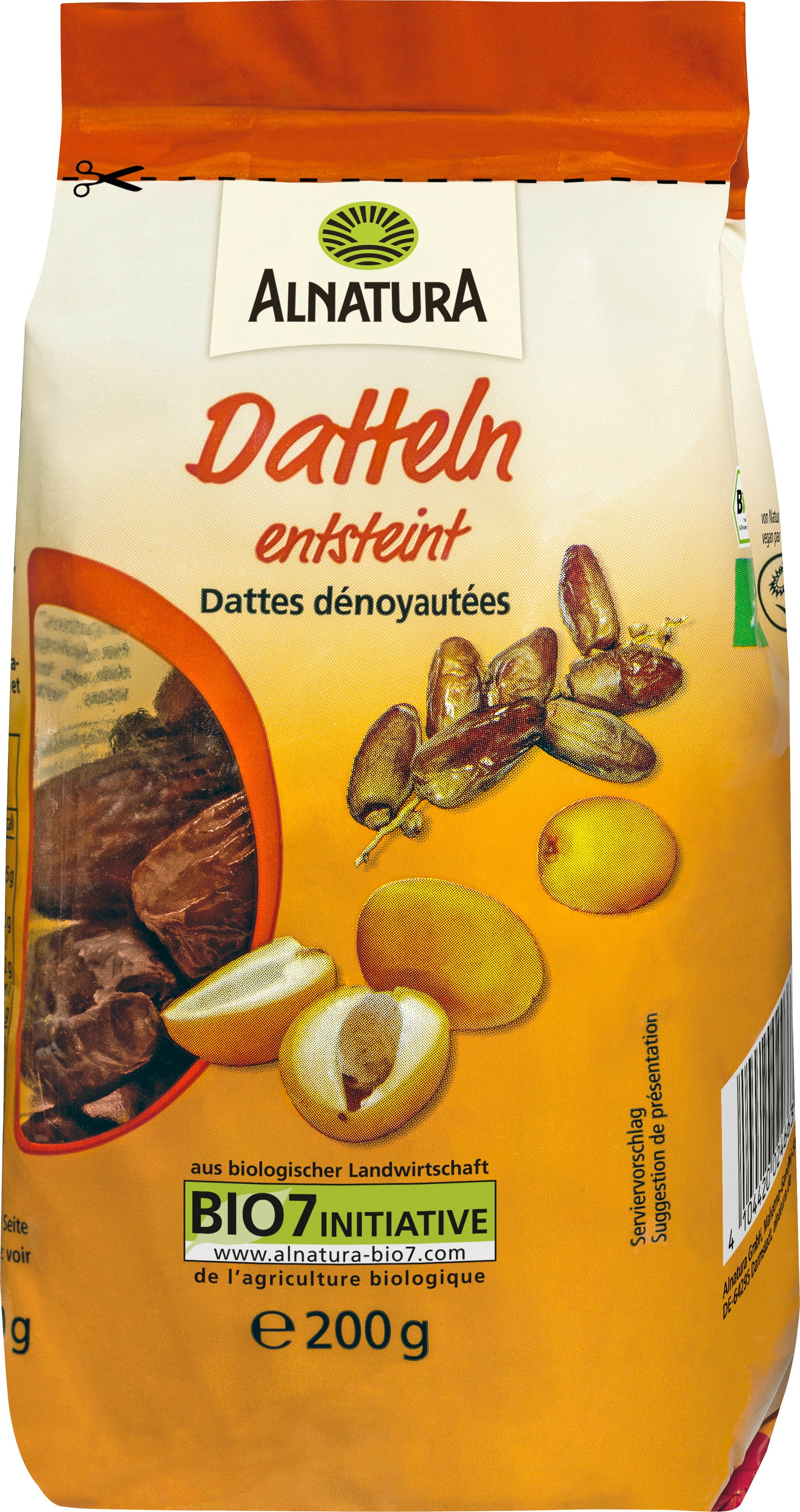 Ekologiska dadlar urkärnade från Alnatura imponerar med sin fruktiga och lätt honungsliknande smak. De konserveras genom torkning och pastörisering. Dadlarna kan avnjutas som de är och passar även utmärkt i müsli eller fruktsallad. De kan också användas i chutneys och curryrätter för att ge en exotisk smak.