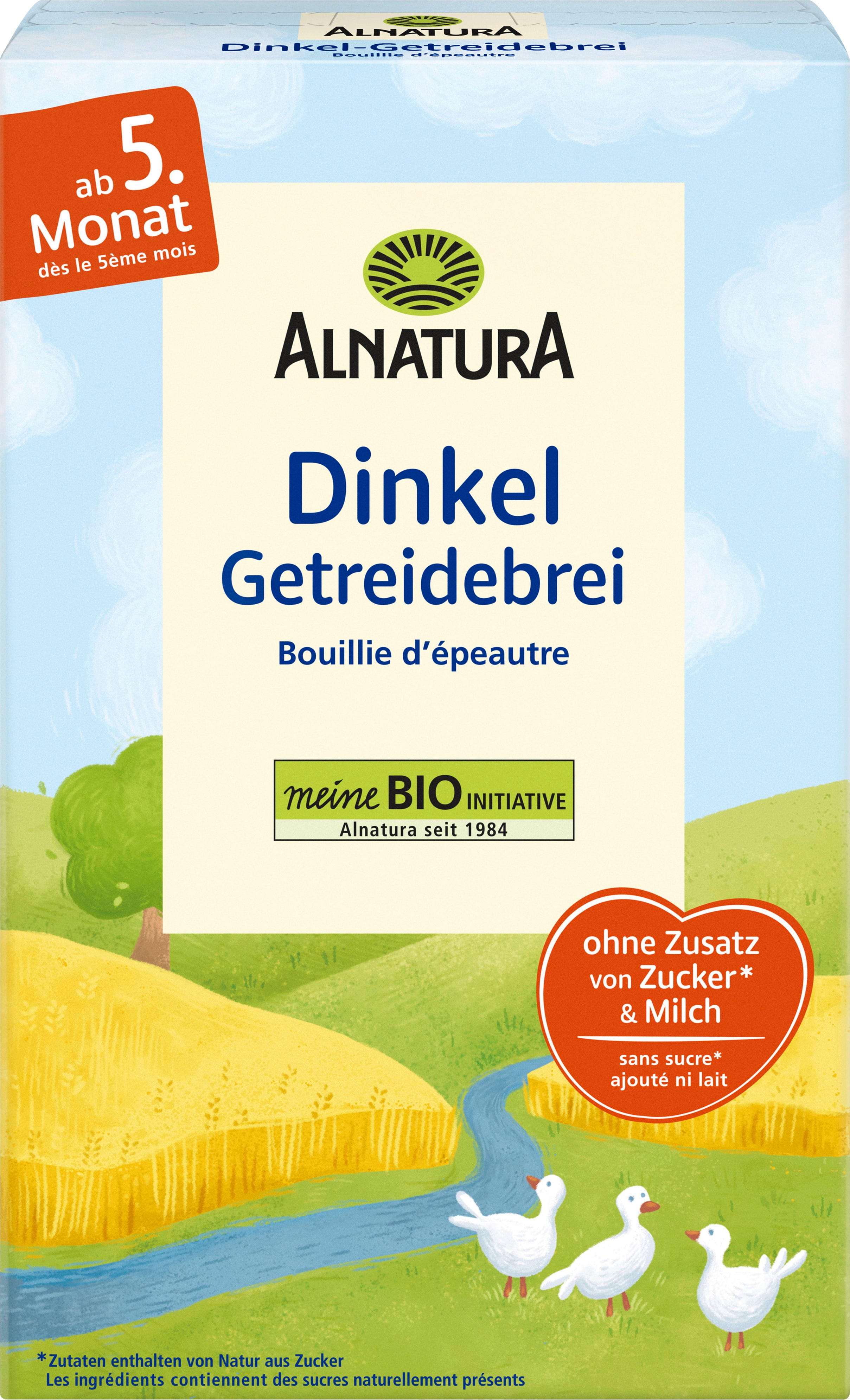 Den fina dinkelgröten från Alnatura är utan tillsatt socker (ingredienserna innehåller naturligt socker) och passar för barn från 5 månaders ålder, till exempel för tillagning av halv mjölkgröt. Från 7 månaders ålder kan gröten kombineras med mixad frukt.