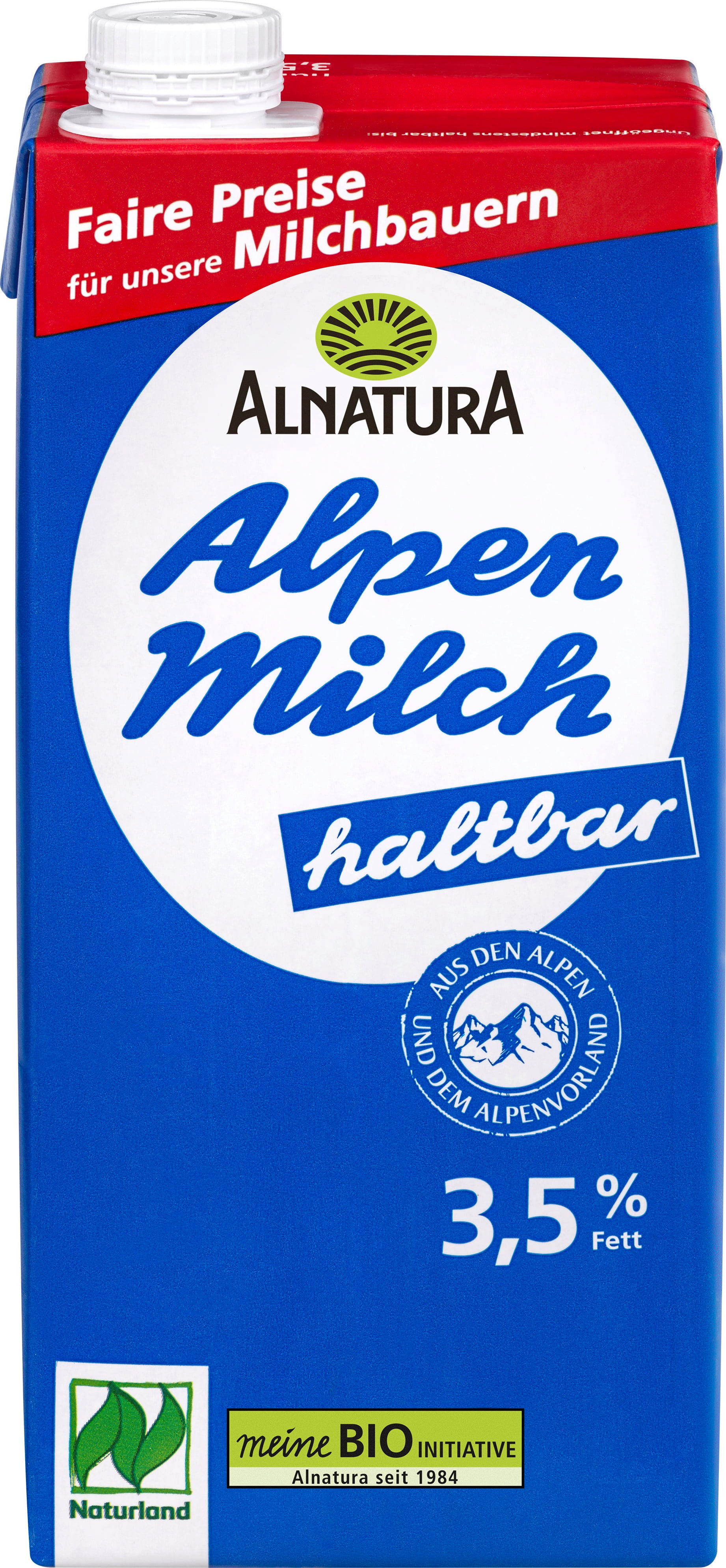 Alnatura ekologisk hållbar alpmjölk med 3,5 % fett passar perfekt att ha i skafferiet. Den smakar utmärkt till cornflakes, i müsli eller i kaffe. Den fungerar även bra till att göra kakao.