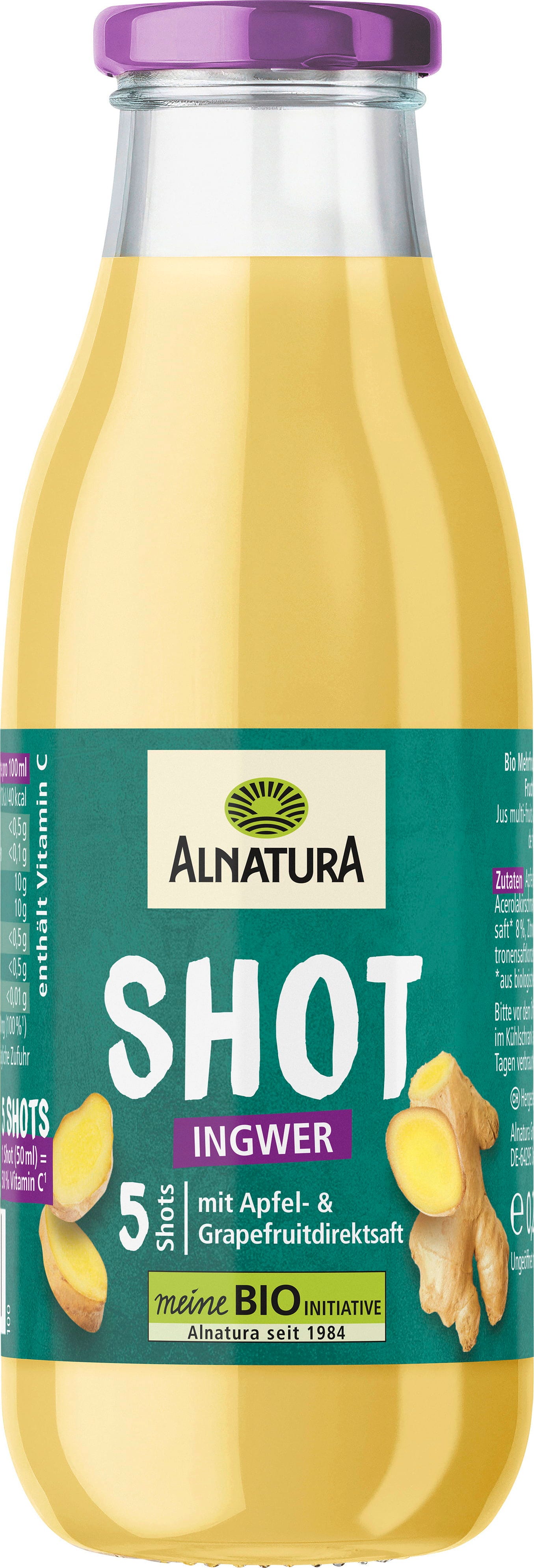 En kick för att starta dagen eller för stunden? I Alnatura ekologisk ingefärashot möter het ingefära fruktig sötma. Förfinad med äppel-, grapefrukt- och andra fruktjuicer är den en perfekt följeslagare i vardagen.