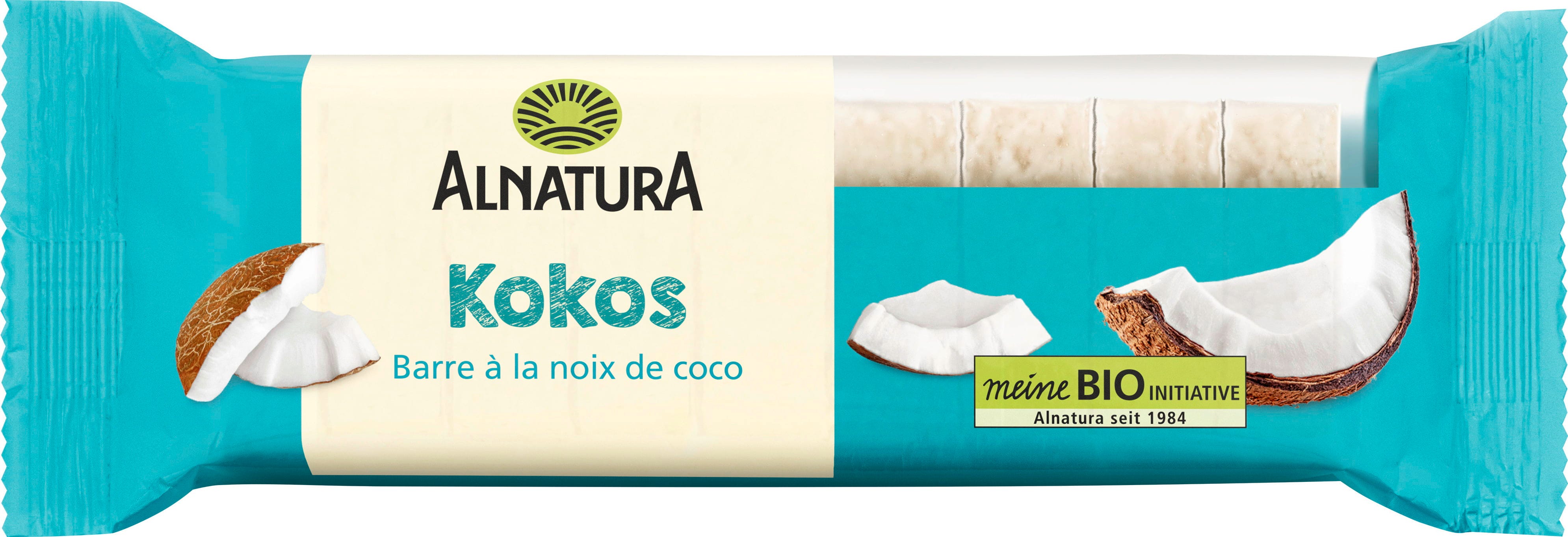 Alnatura ekologisk kokossnitt imponerar med sin exotiskt fruktiga smak. Den passar perfekt som mellanmål eller att ta med, eftersom oblatet runt om skyddar mot kladdiga fingrar.