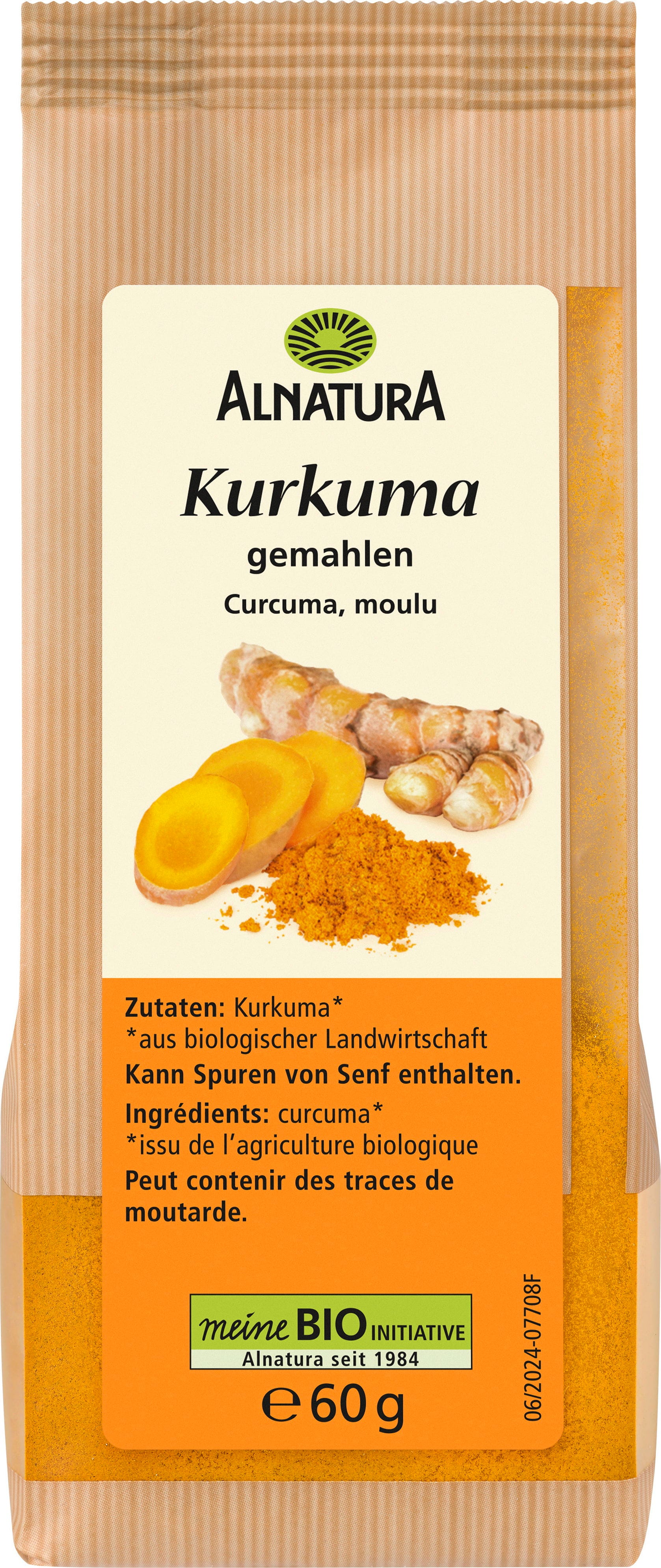 Alnatura ekologisk gurkmeja malen har en pepprig och lätt fruktig smak. Pulvret ger kött-, fisk- och risrätter samt många andra rätter en lätt besk ton och en intensiv orangegul färg.