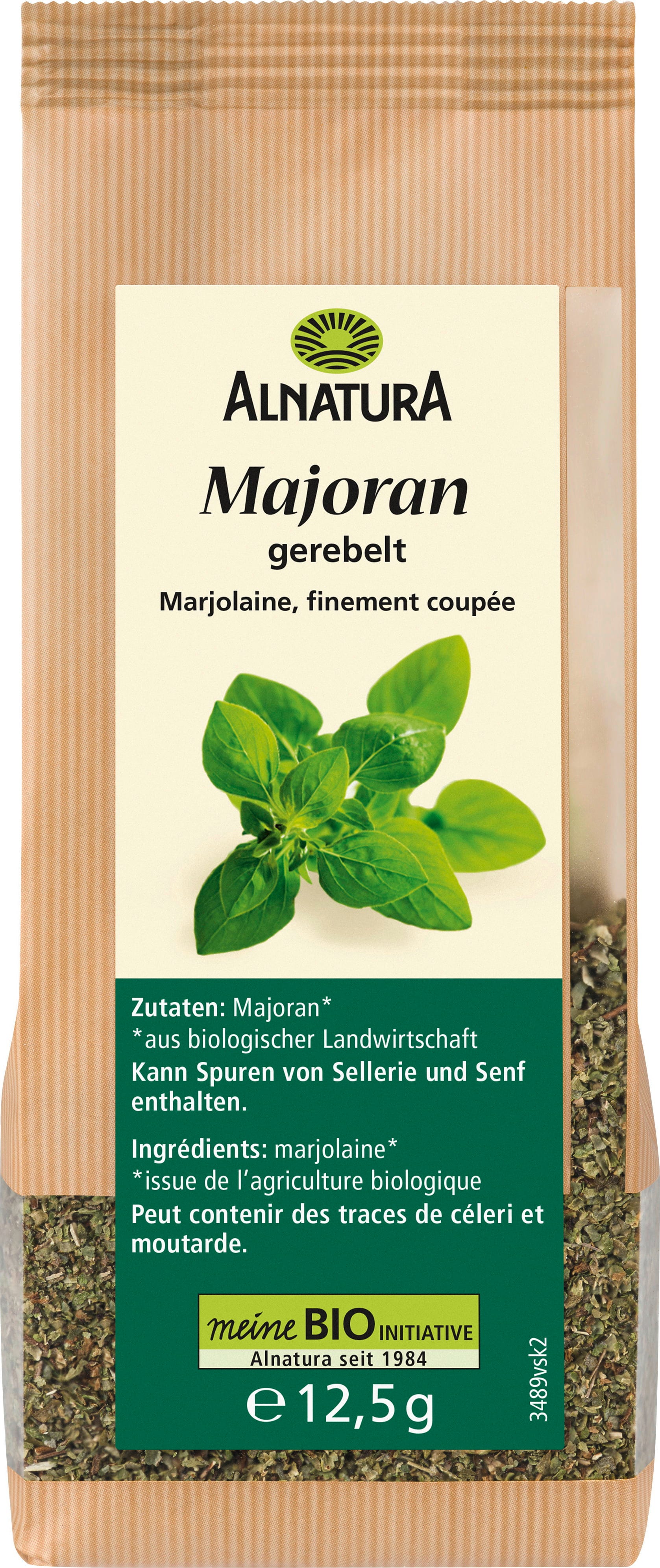 En av de medelhavska klassikerna: Alnatura ekologisk mejram är nära besläktad med oregano och ger med sin mildare, mindre bittra smak en aromatisk och kraftfull ton till soppor, kött- och grytor, men även till stekt potatis, hirs och ris. Kryddan är smulad, vilket innebär att de torkade bladen har repats från stjälkarna och finfördelats för enkel användning.