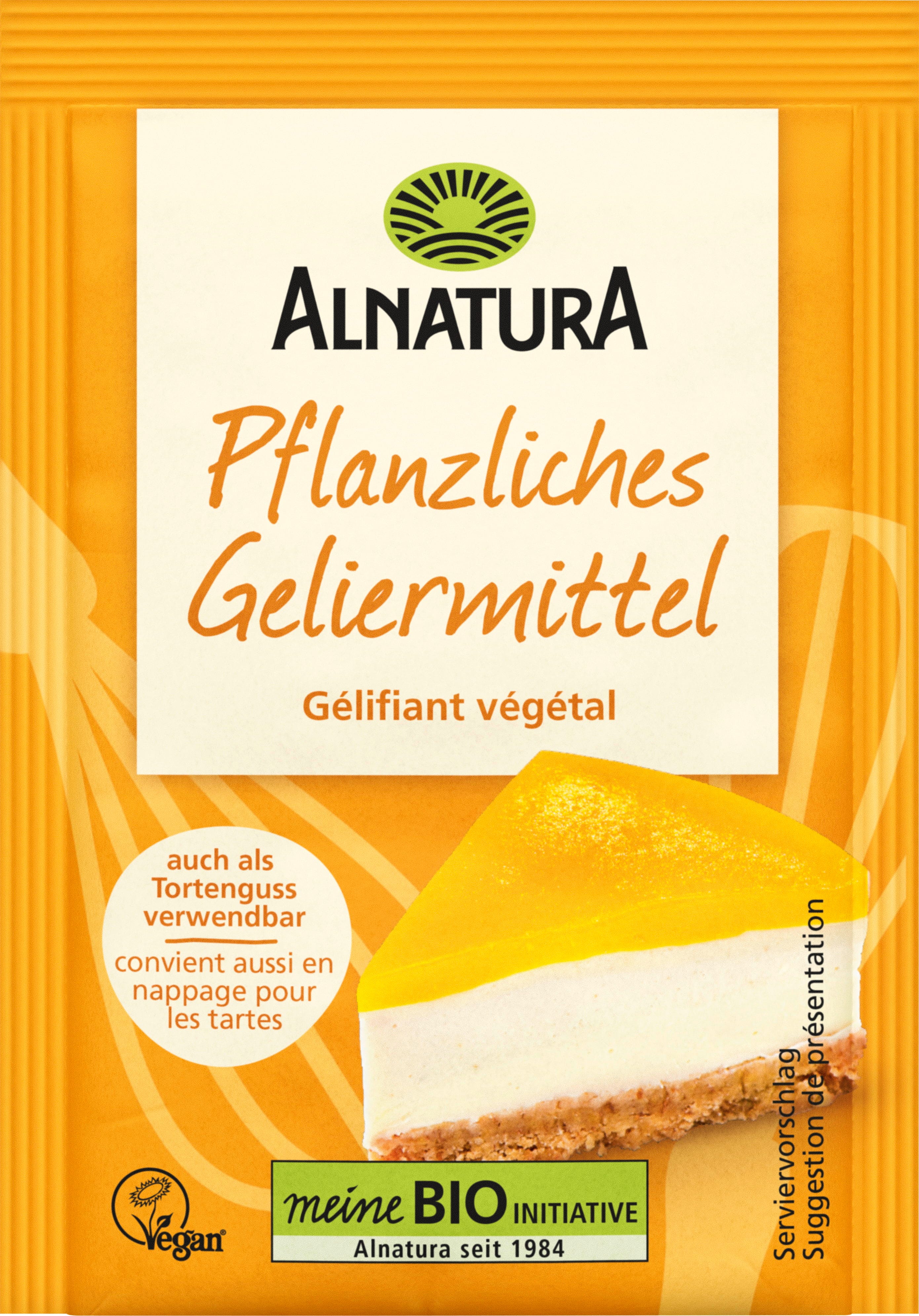 Det veganska alternativet till gelatin baserat på agar-agar i ekologisk kvalitet. Passar utmärkt till tårtgelé, fruktpålägg, desserter och salta patéer. En förpackning motsvarar 6 gelatinblad och räcker till 500 ml vätska.