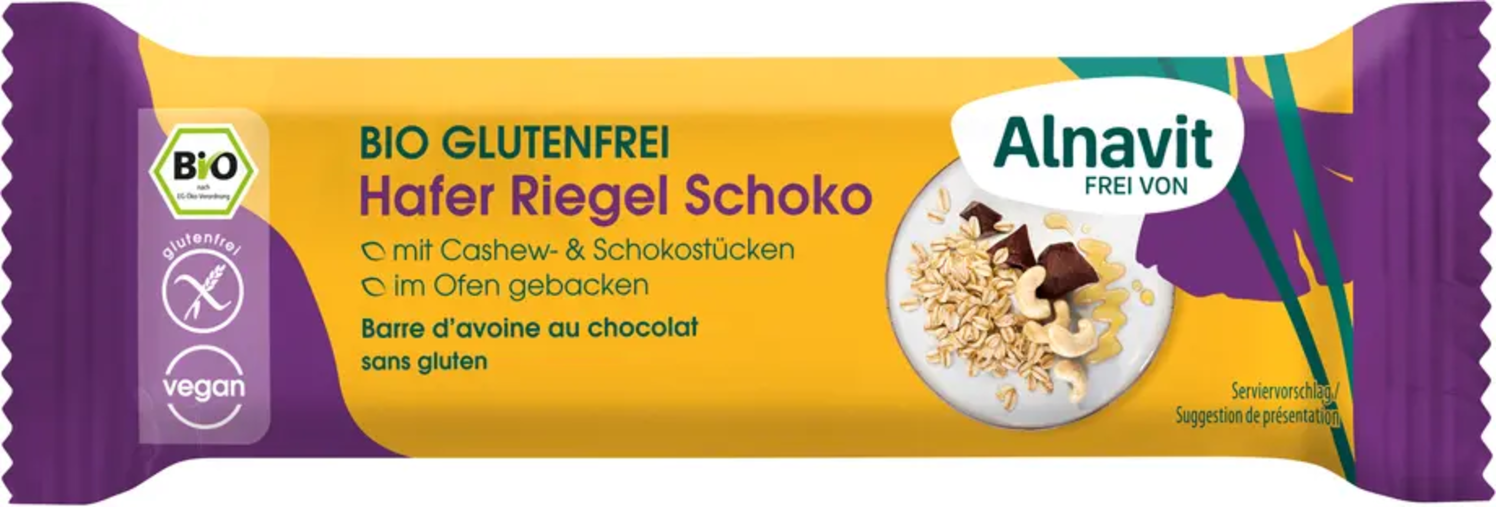 Alnavits chokladbar med havre kombinerar glutenfria ekologiska fullkornshavregryn med fina cashewnötter och ljuvligt smältande chokladbitar. Skonsamt ugnsbakad för en saftig konsistens och intensiv chokladsmak. Perfekt som mellanmål eller energikick före träningen.
