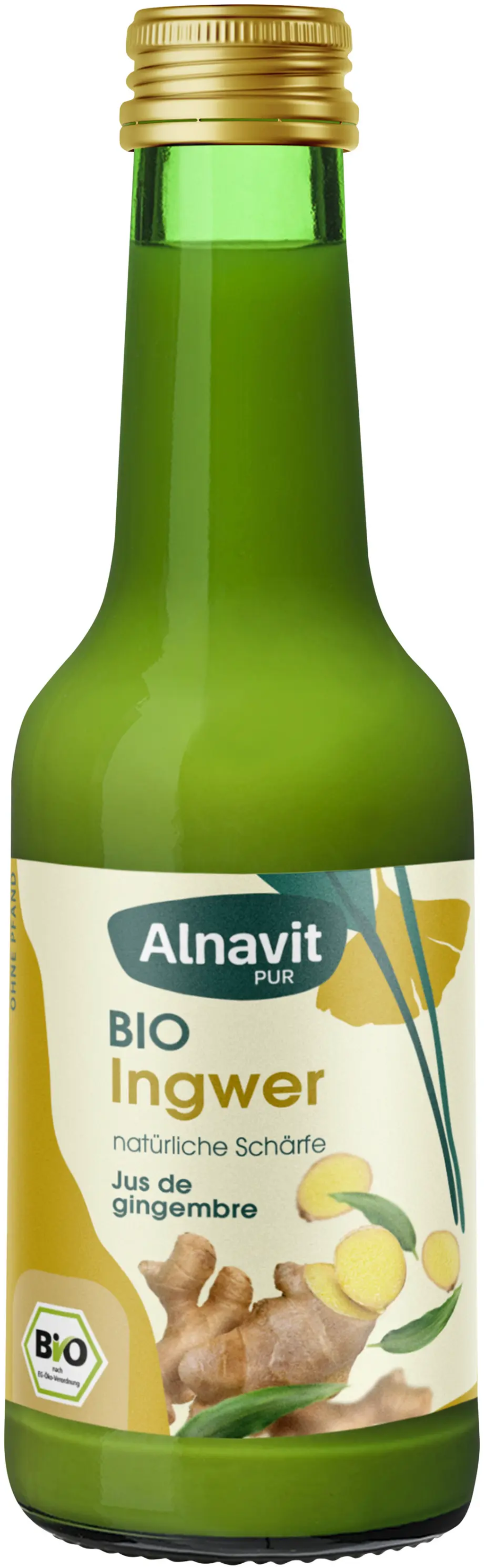 Alnavits ekologiska ingefärsjuice med 97 % ingefära och en skvätt citronsaft imponerar med sin intensiva hetta. Utmärkt för att smaksätta teer, smoothies eller asiatiska rätter. Skonsam bearbetning bevarar både den naturliga smaken och de värdefulla näringsämnena.