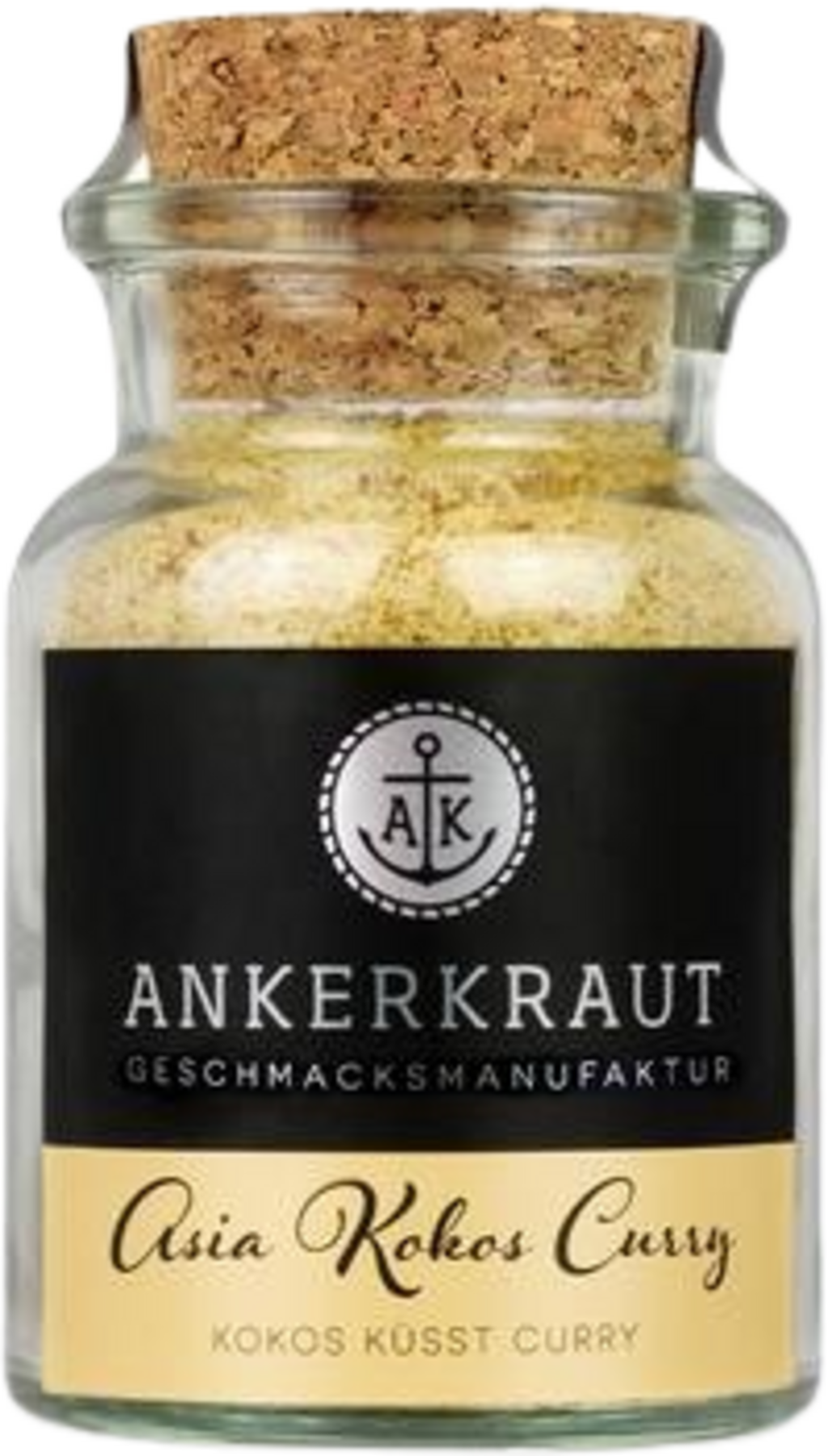 Extra kokosnötssmak utlovas av kryddblandningen Asia Coconut Curry från Ankerkraut. Blandningen innehåller trots allt kokosmjölkspulver, kokosblossocker och kokosflingor. Den innehåller också klassiska currykryddor som gurkmeja, bockhornsklöver, spiskummin och ingefära. Som en fruktig och fräsch motpol till den söta kokosnötterna finns också limefruktpulver i blandningen. Oavsett om det är Tom Kha Gai eller Thai Veggie Curry - få den fulla kokosnötscurry-smaken på din tallrik.