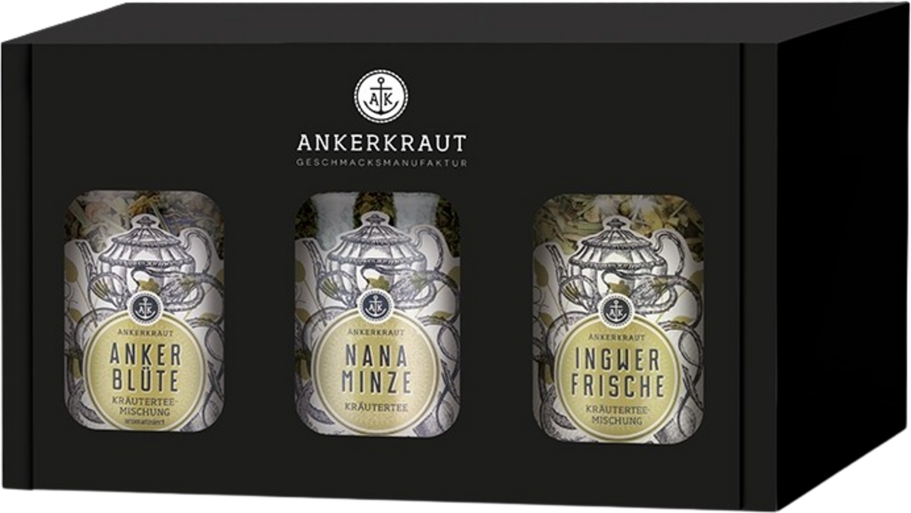 - Ankerblüte Örtblandning: I denna örtblandning möts bland annat björnbär, nässlor, vilda jordgubbar och eukalyptusblad med fruktiga bär, rosa peppar och exotisk drakfrukt.