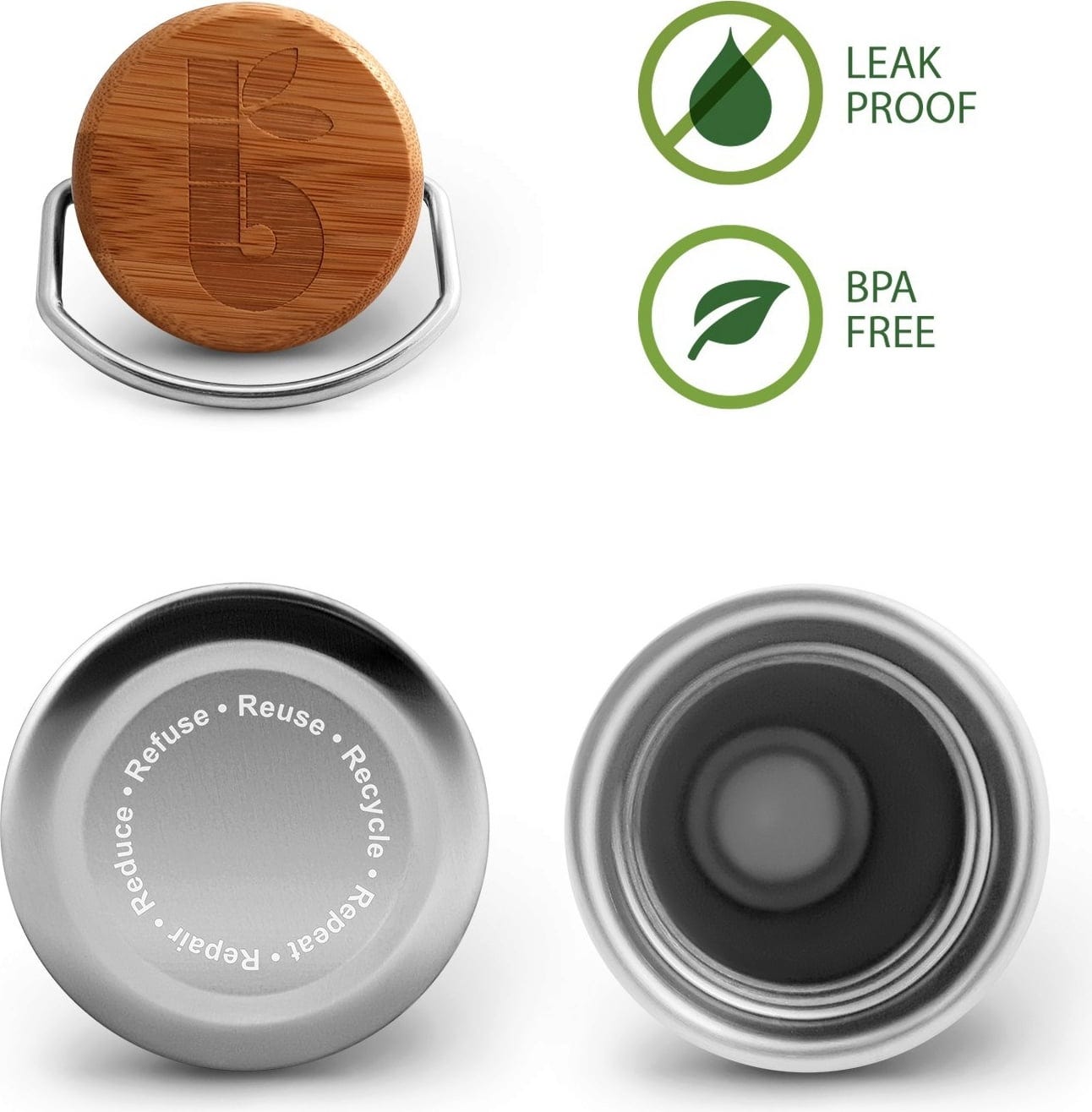 Denna läckagesäkra flaska är den perfekta följeslagaren i skolan, på jobbet, vandring eller andra äventyr. Dess enkla, moderna design övertygar nästan alla smaker. Flaskan av rostfritt stål avrundas med ett lock av bambu. Flaskan innehåller inte BPA eller andra skadliga kemikalier. Efter användning rengörs flaskan helt enkelt med en flaskborste.