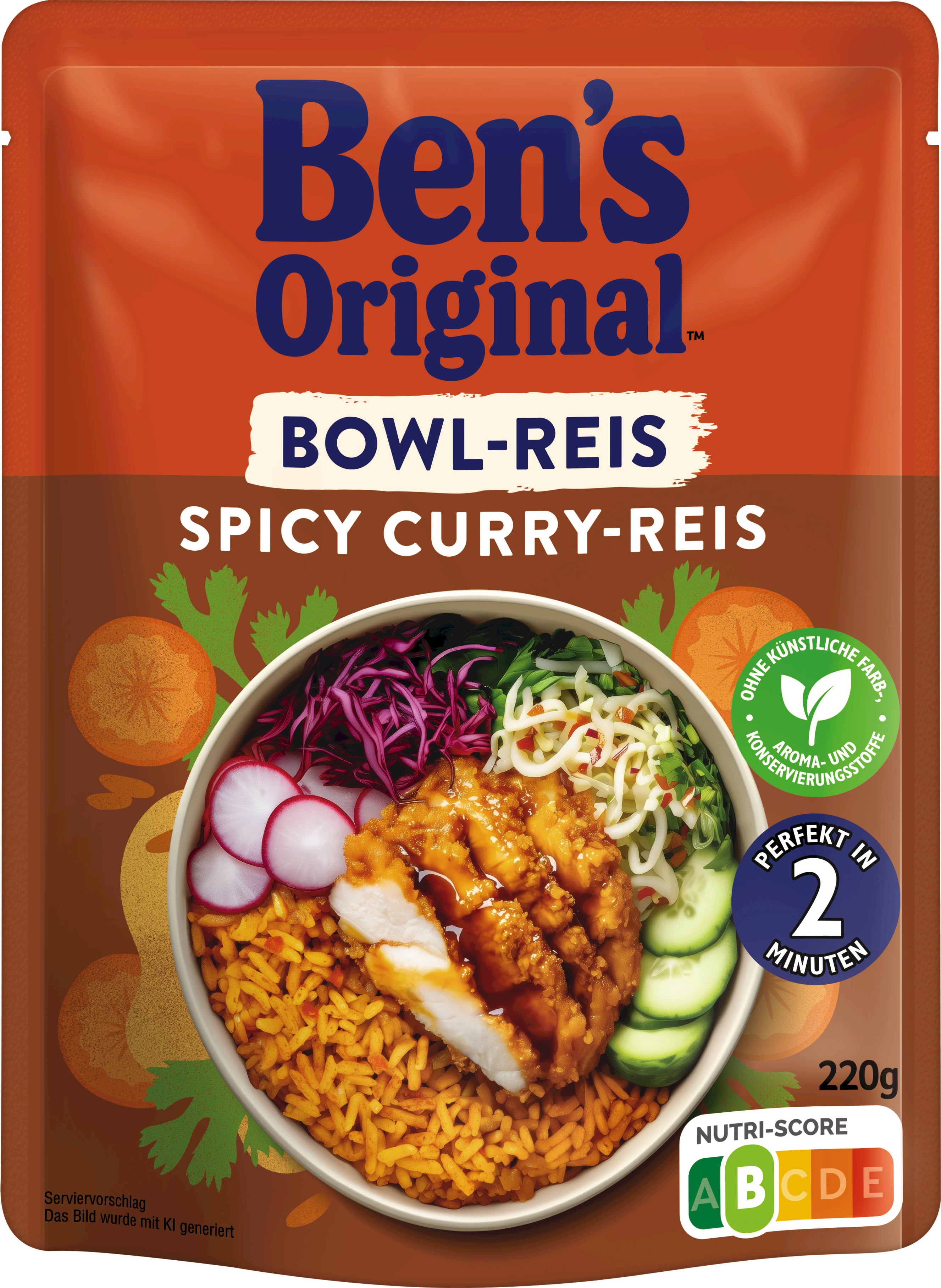 I den här Express Bowl-skapelsen från Ben's Original möter perfekt ångat långkornigt ris en noga utvald kombination av kryddiga, lite heta currykryddor, vitlök och små bitar morot.