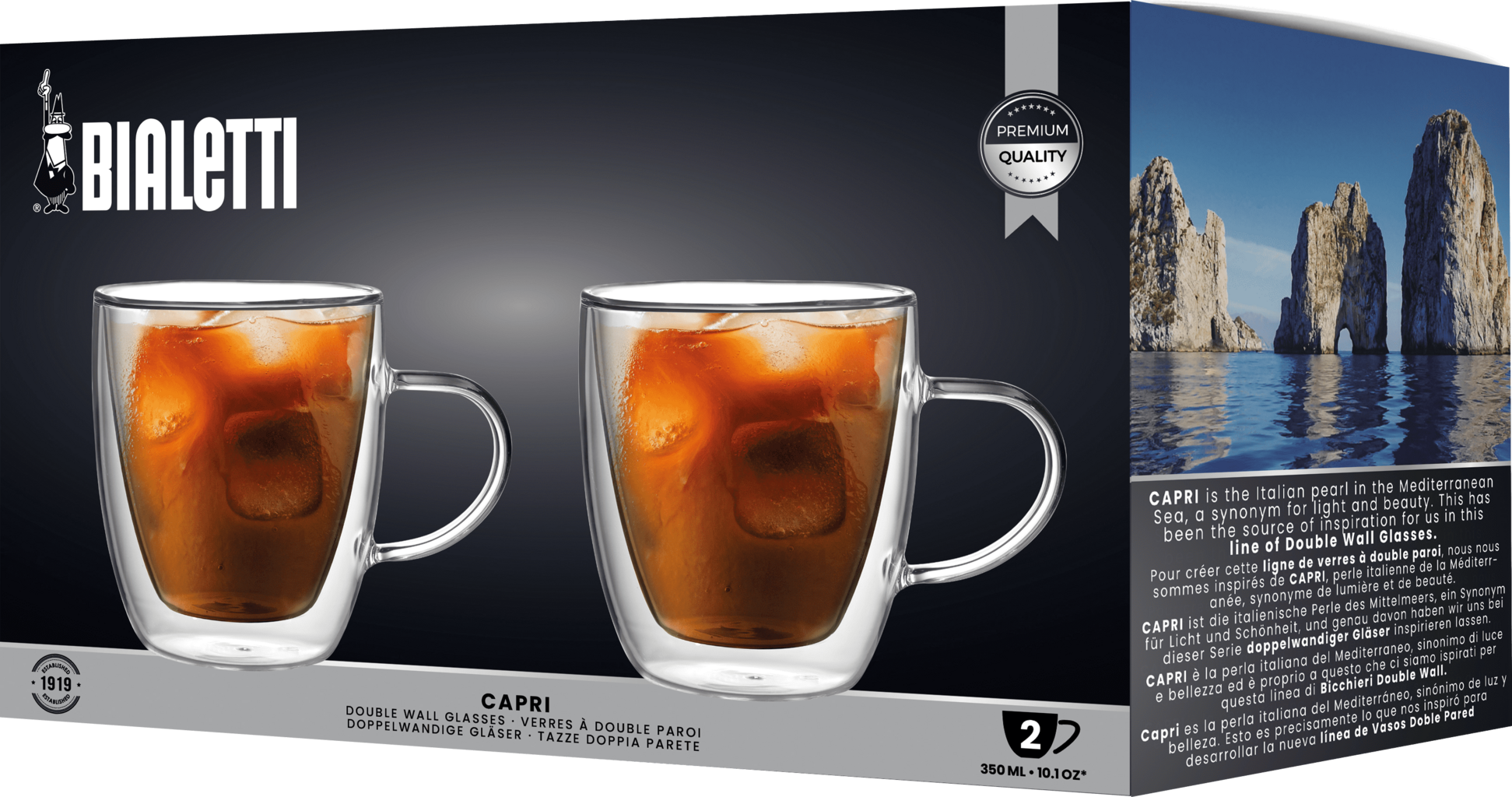 Upplev stilfull njutning med det 2-delars glassetet ”Capri”. De dubbellagrade glasen av värmetåligt borosilikatglas har utmärkt isoleringsförmåga, vilket håller dina drycker varma eller kalla längre. Perfekta för dina dagliga njutningsstunder – oavsett om det gäller en rykande kopp kaffe eller en svalkande dryck.