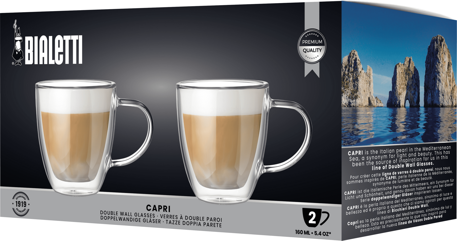 Upplev stilfull njutning med det 2-delars glassetet ”Capri”. De dubbellagrade glasen av värmetåligt borosilikatglas har utmärkt isoleringsförmåga, vilket håller dina drycker varma eller kalla längre. Perfekta för dina dagliga njutningsstunder – oavsett om det gäller en rykande kopp kaffe eller en svalkande dryck.