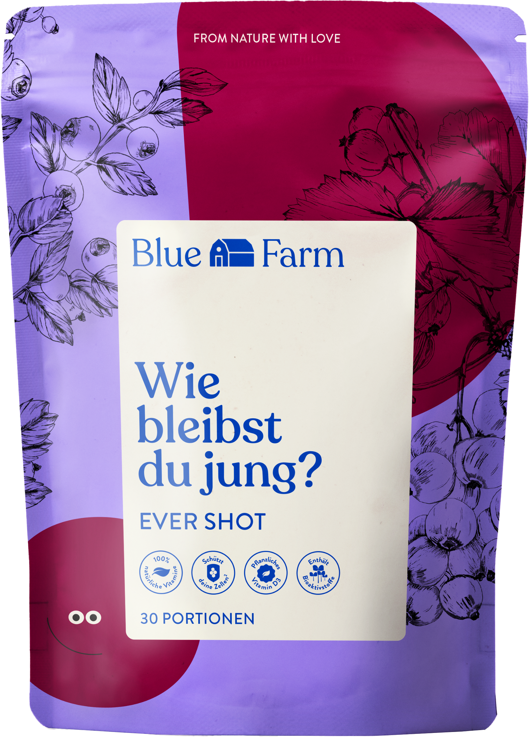 Med Ever Shot från Blue Farm får du bärkraft och superfoods direkt hem till dig i en praktisk, portionsfördelad pulverform. Blanda helt enkelt med vatten och på några sekunder har du en dryck som enkelt kan integreras i din dagliga rutin. Mixen kombinerar frukt, växtextrakt och näringsämnen.