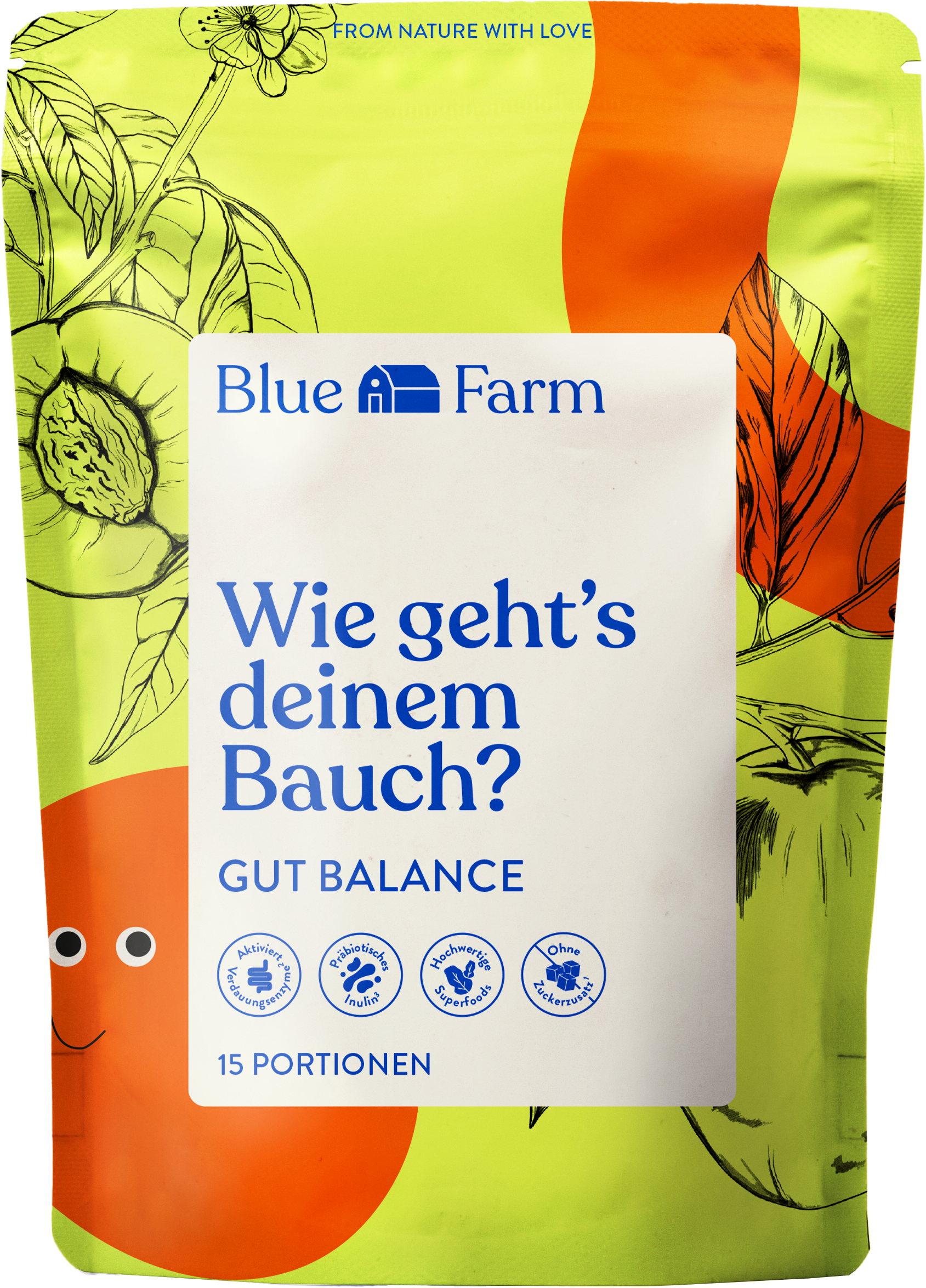 Gut Balance från Blue Farm kombinerar en noggrant avvägd blandning av fermenterad havre, inulin från cikoria, frukt- och växtpulver samt vegetabiliskt kalcium från rödalger - allt i en praktisk pulverform. Med sin fruktiga sammansättning av mango, ananas och persika har dryckespulvret en behaglig smak. Det innebär att du kan kombinera många ingredienser med bara en dryck och enkelt komplettera din dagliga rutin.