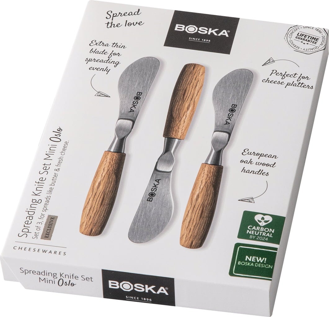 Med de praktiska Mini Oslo-smörknivarna från Boska blir varje frukost en njutning. De kompakta knivarna ligger bekvämt i handen tack vare det ergonomiska handtaget i trä och ger en elegant touch till frukostbordet. Perfekta för smör, bredbara röror och färskost – de fina bladen gör det enkelt att stryka på ett jämnt lager direkt på brödet. Oavsett om det är frukost, brunch eller kvällsmål – dessa små knivar gör stor skillnad!