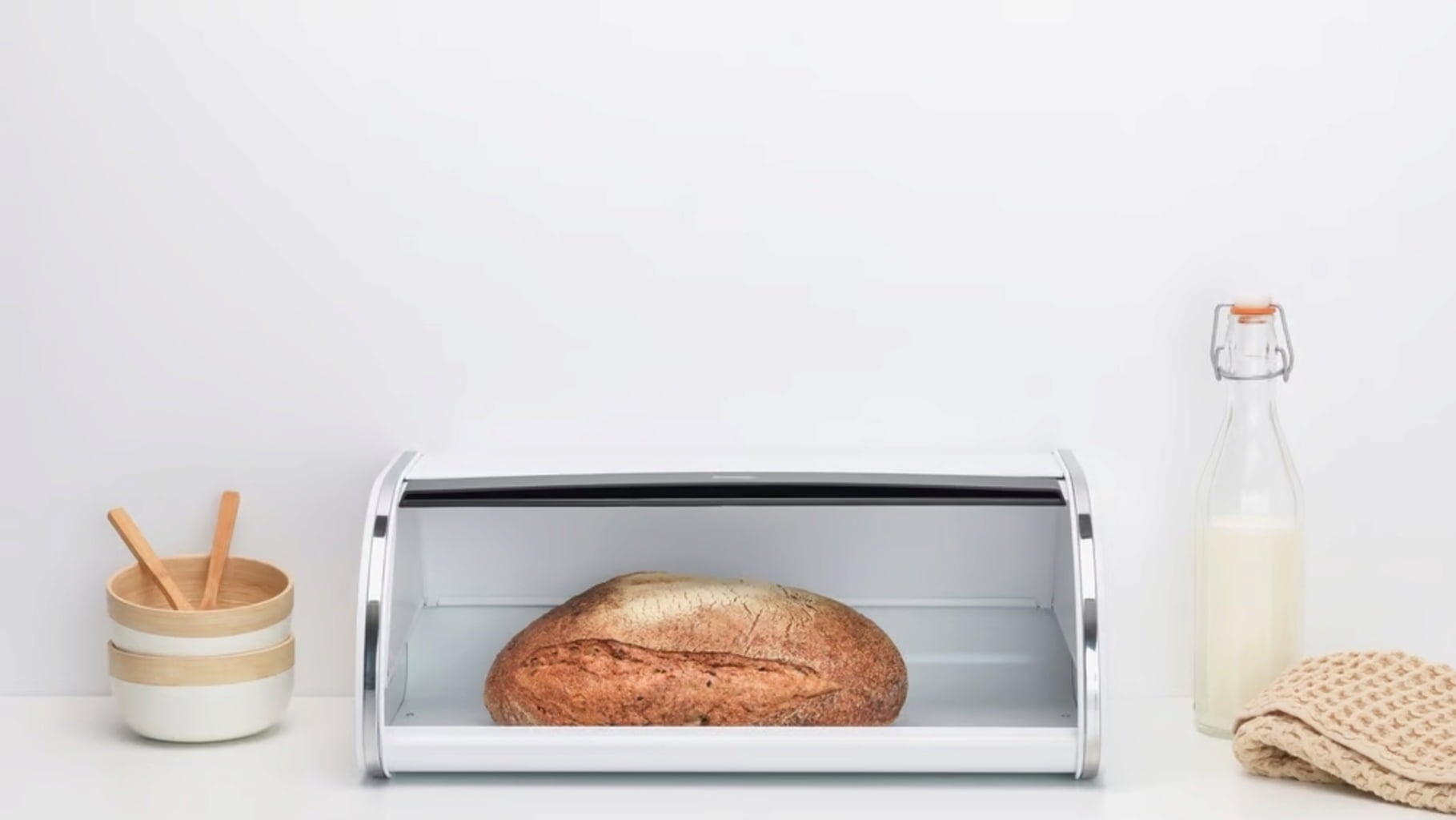 Vitt bröd, fullkorn eller croissanter – denna eleganta brödlåda rymmer upp till två bröd och håller dem fräscha längre tack vare en nopprig botten. Locket glider tyst inåt, sparar plats på köksbänken och ovansidan ger dessutom extra förvaringsyta.
