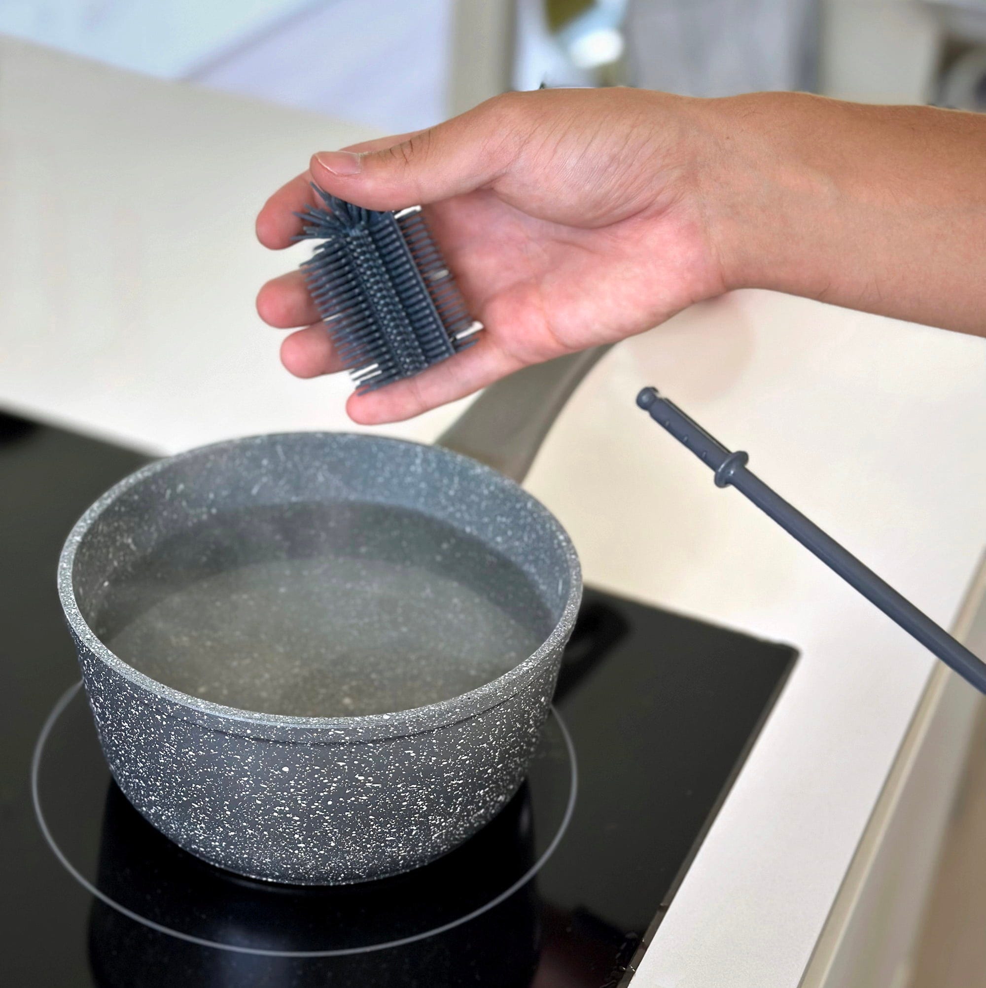 Särskilt för baby- och barnflaskor imponerar borsten med sina hygieniska egenskaper, eftersom det högkvalitativa silikonet inte absorberar oönskade lukter. Den moderna designen passar perfekt i köket och är dessutom mycket praktisk: borsthuvudet kan enkelt tas av och rengöras hygieniskt i diskmaskin. Den perfekta lösningen för dig som vill ta hand om dina återanvändbara flaskor på bästa sätt.