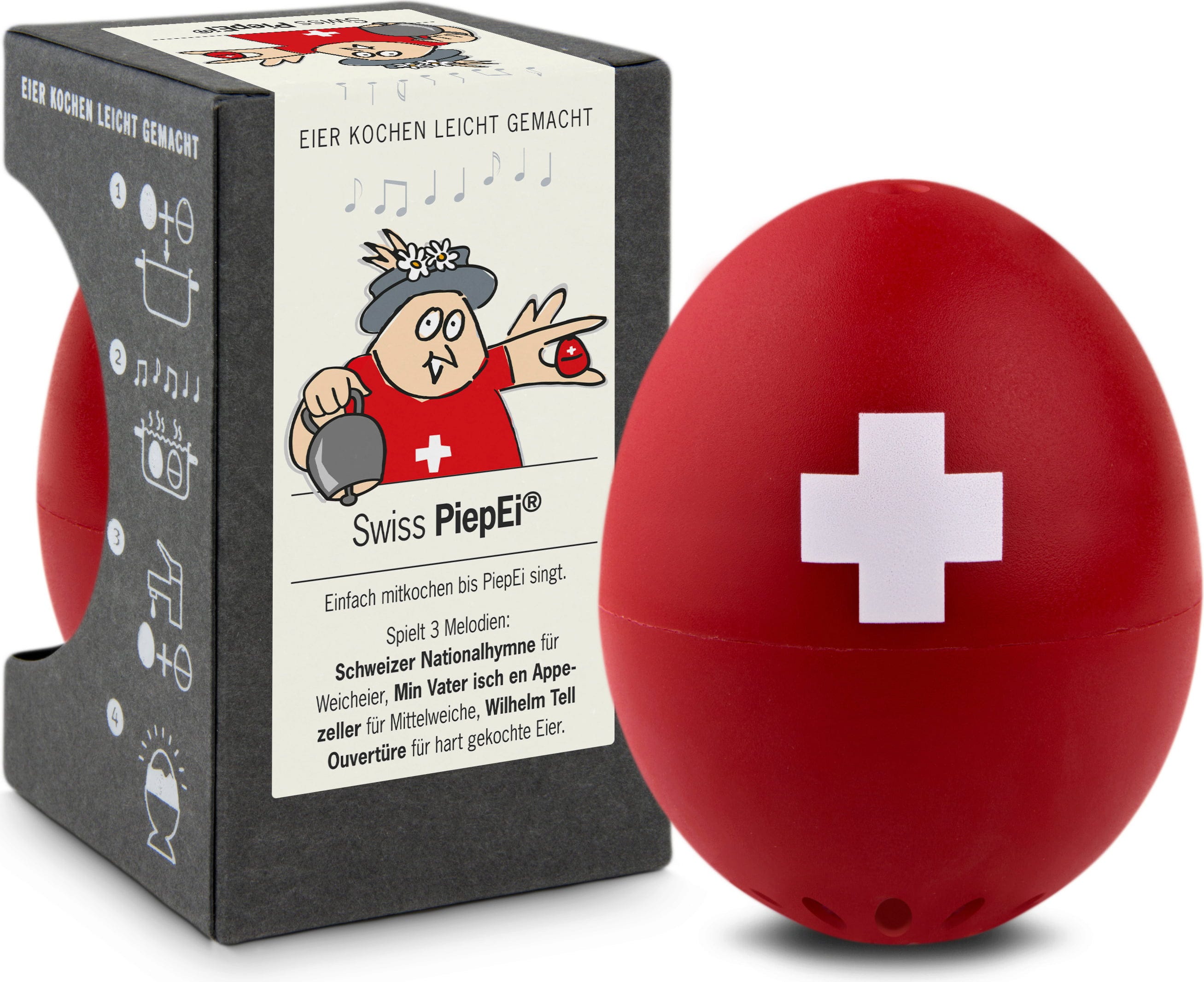Man känner igen det - kokta ägg är en vetenskap i sig: ibland blir ägget för hårt, ibland för löst. Swiss PiepEi från Brainstream är den perfekta assistenten för ditt perfekt kokta ägg.