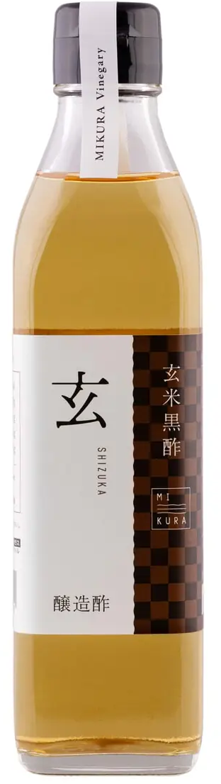 Den japanska Mikura - svart risvinäger "Shizuka" av brunt ris, som fermenteras i träfat, tillverkas av opolerat fullkornsris och bearbetas därefter traditionellt till koji för att sedan fermenteras statiskt i träfat under 90 dagar. Resultatet är en mild och fyllig vinäger med harmonisk syra och fin spannmålsarom. Passar bra till sallader, dressingar, marinader eller som dryck blandad med vatten, mjölk eller fruktjuice.