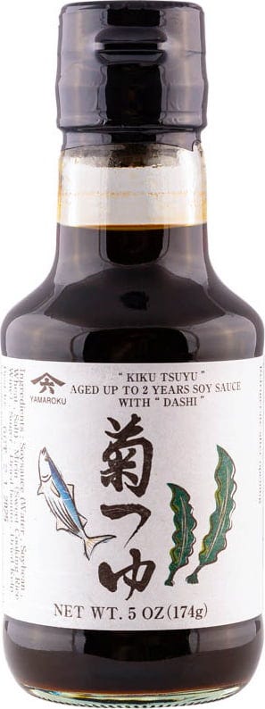 Tsuyu från Yamaroku kombinerar lagrad sojasås med mirin, bonito och kombu - perfekt som bas för buljonger, dipp eller kalla nudelsoppor. mognadslagringen i 2 år på träfat ger en särskilt välbalanserad smak.