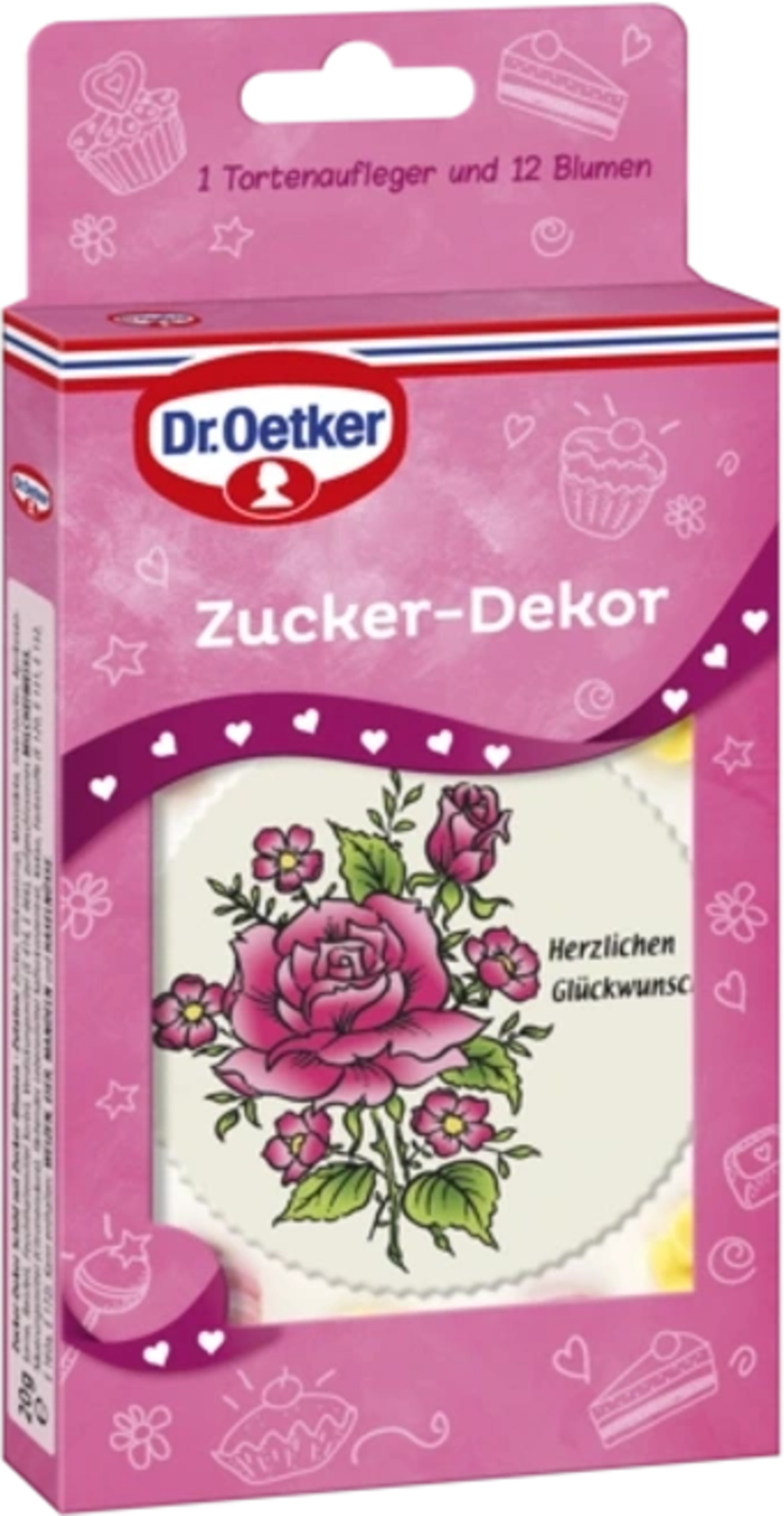 Sockerdekorationsetiketterna från Dr. Oetker kommer omedelbart att förtrolla tårtfans i alla åldrar. De ätbara dekorationssköldarna är perfekta för en mängd olika födelsedagstårtor. Förpackningen innehåller 1 sockerdekorationssköld och 12 sockerblommor.