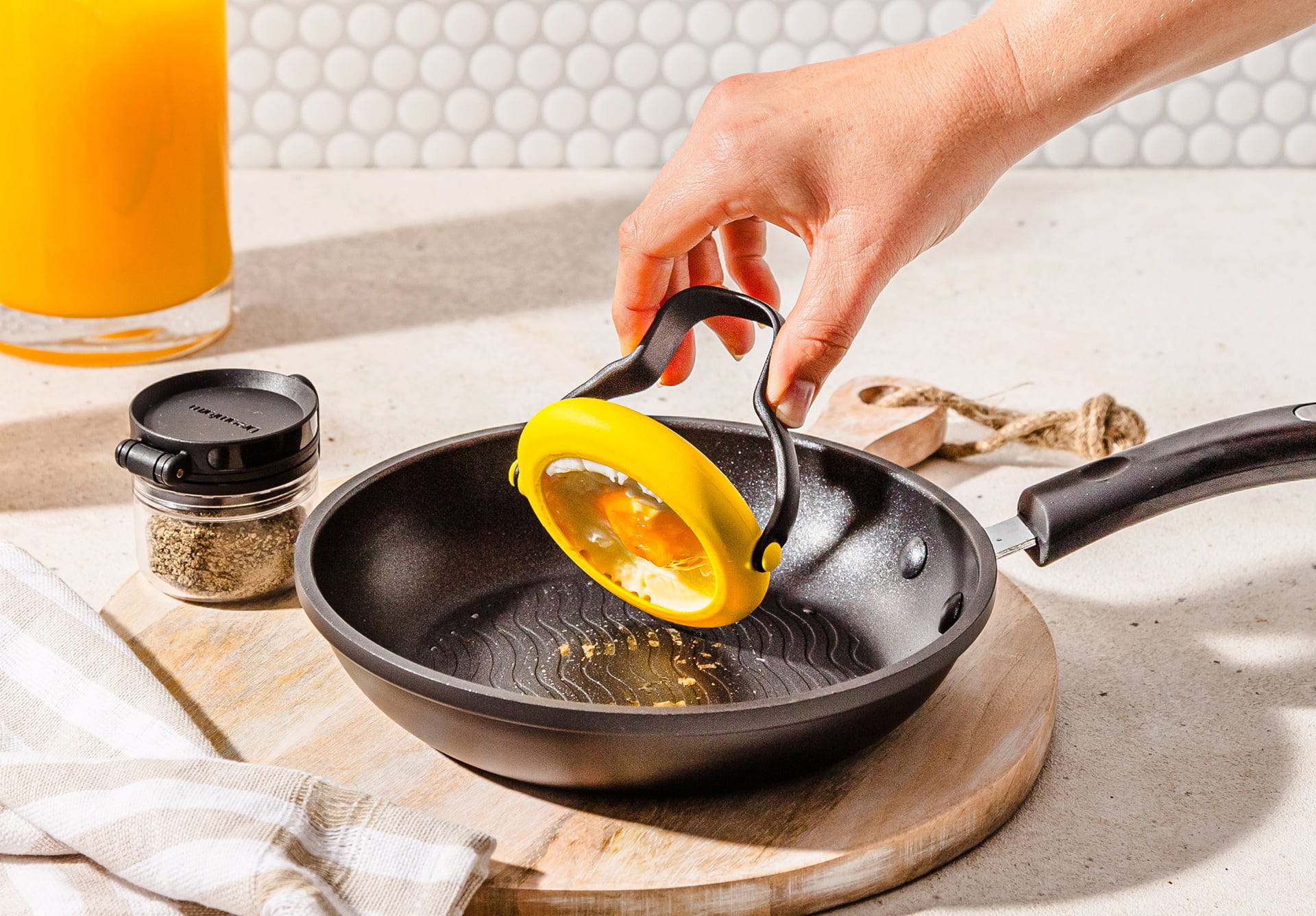 Tack vare den smarta innerringen lyfts ägget rent medan äggulan stannar precis där den ska. Det flexibla handtaget ger ett säkert grepp och gör serveringen enkel. Tillverkad av värmebeständig silikon och nylon är denna BPA-fria kökshjälp både slitstark och perfekt för daglig användning vid spisen.