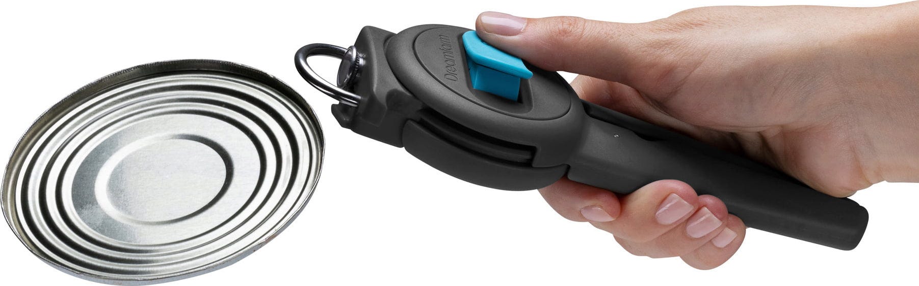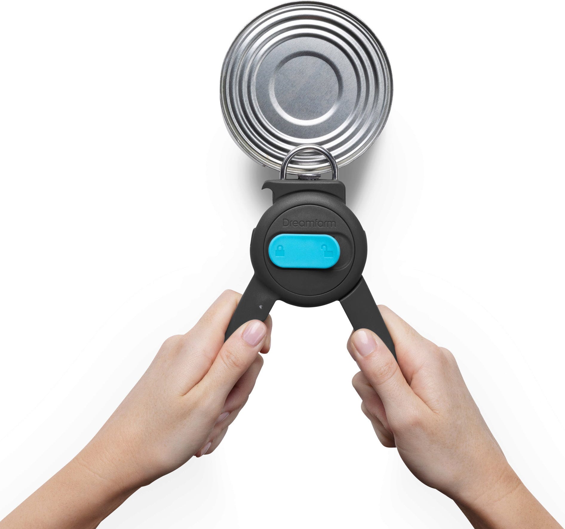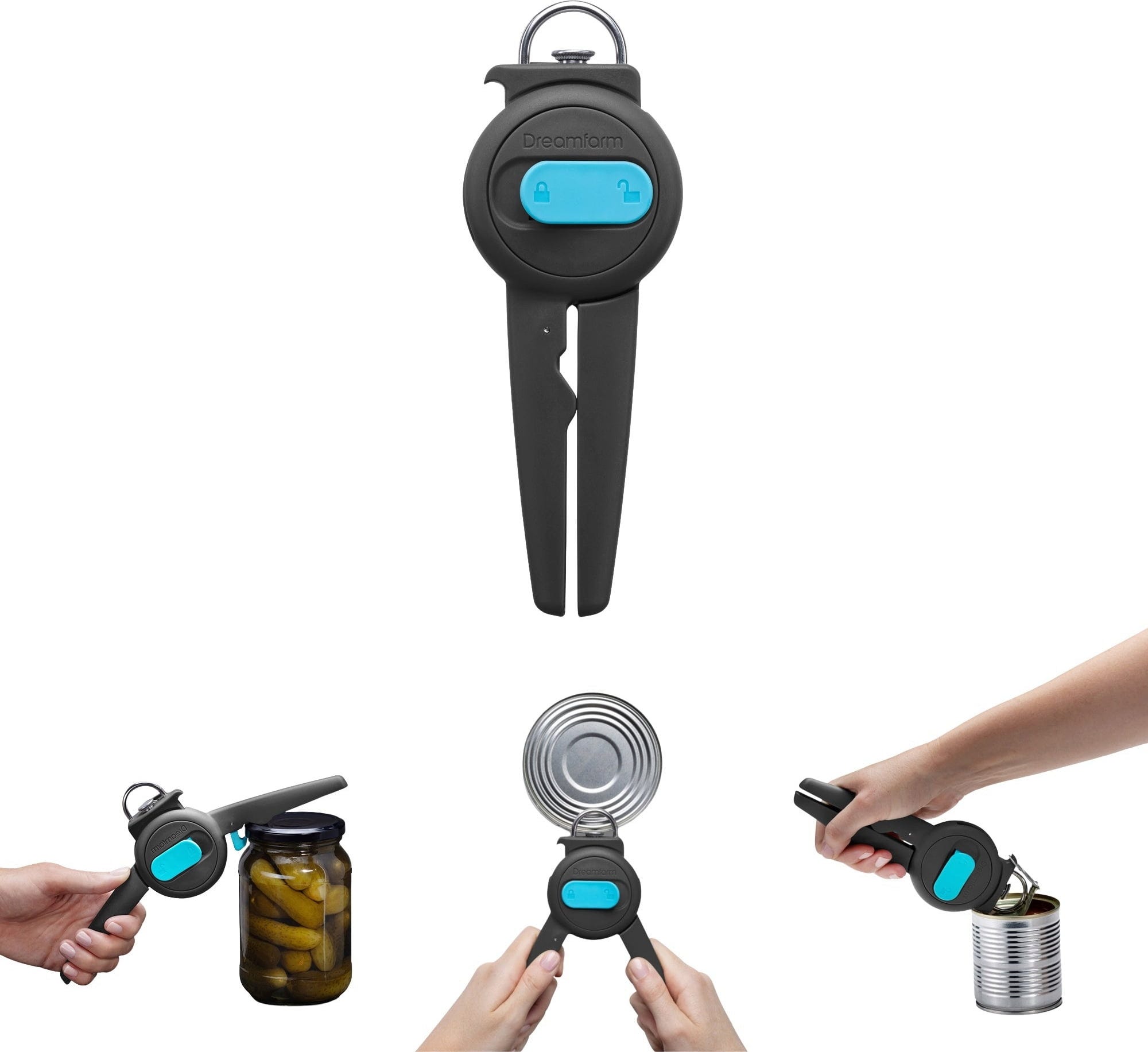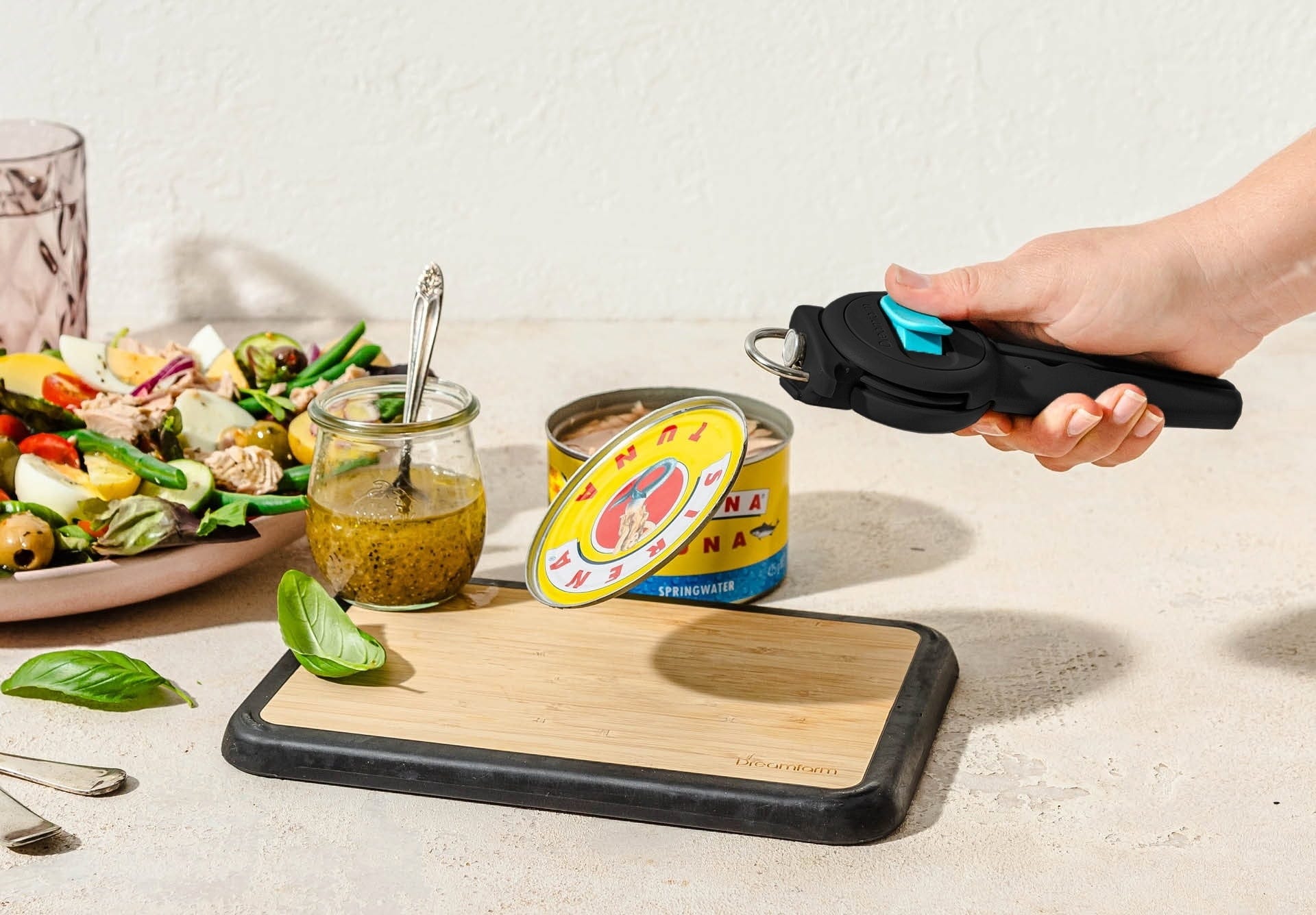 Med Dosenöffner Dopener från Dreamfarm får du en innovativ 3-i-1-konservöppnare som arbetar nästan av sig själv genom att du bara trycker ihop handtagen! Det härdade hjulet i rostfritt stål skär så exakt att inga vassa kanter uppstår, medan den integrerade magneten gör att du kan lyfta av locket hygieniskt och utan att röra det.