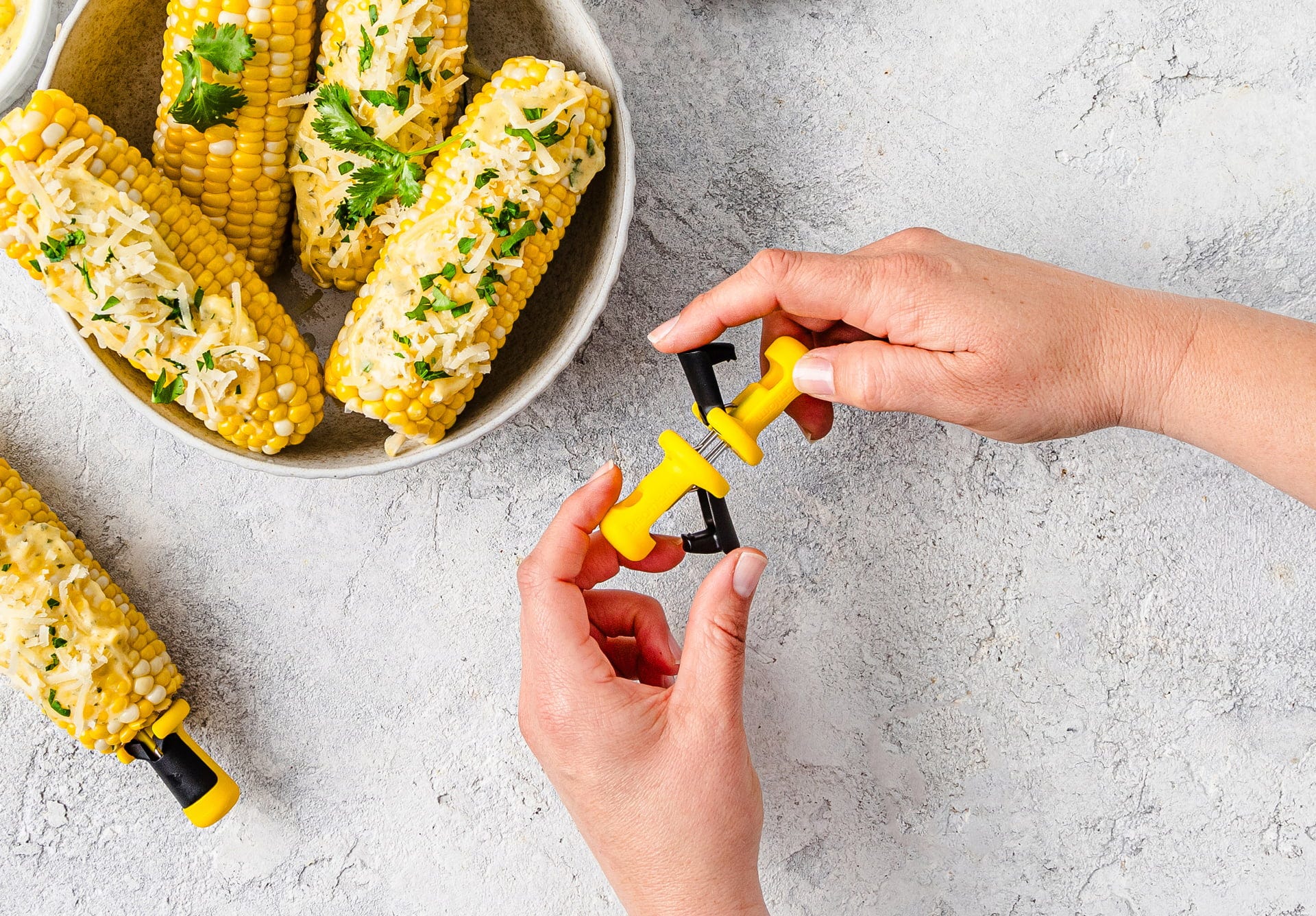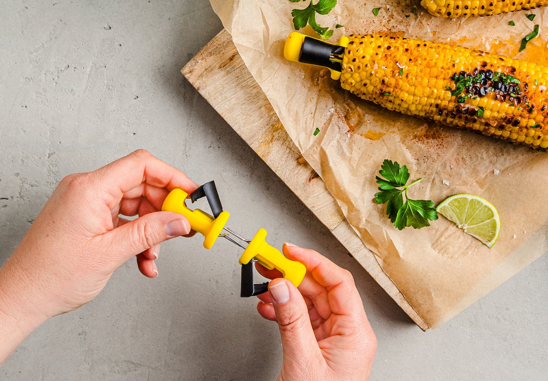 Den ergonomiska designen gör att majskolven ligger stadigt i handen, vilket gör dem perfekta för grillkvällar i trädgården, picknickar eller snabb matlagning utomhus. Efter användning kan paren enkelt sättas ihop så att spetsarna skyddas och setet förvaras platsbesparande i lådan.