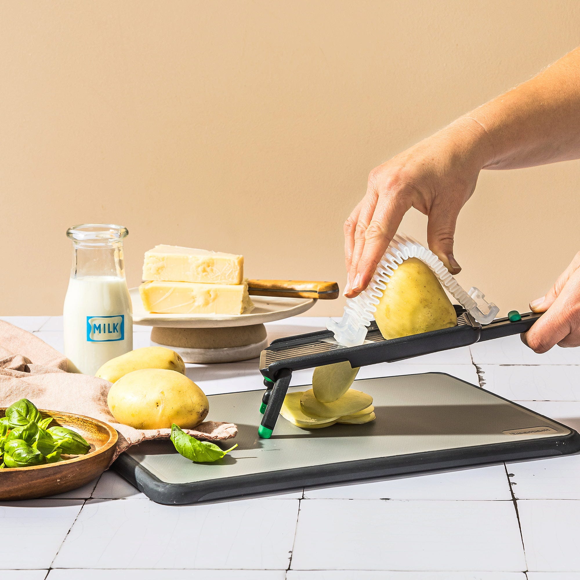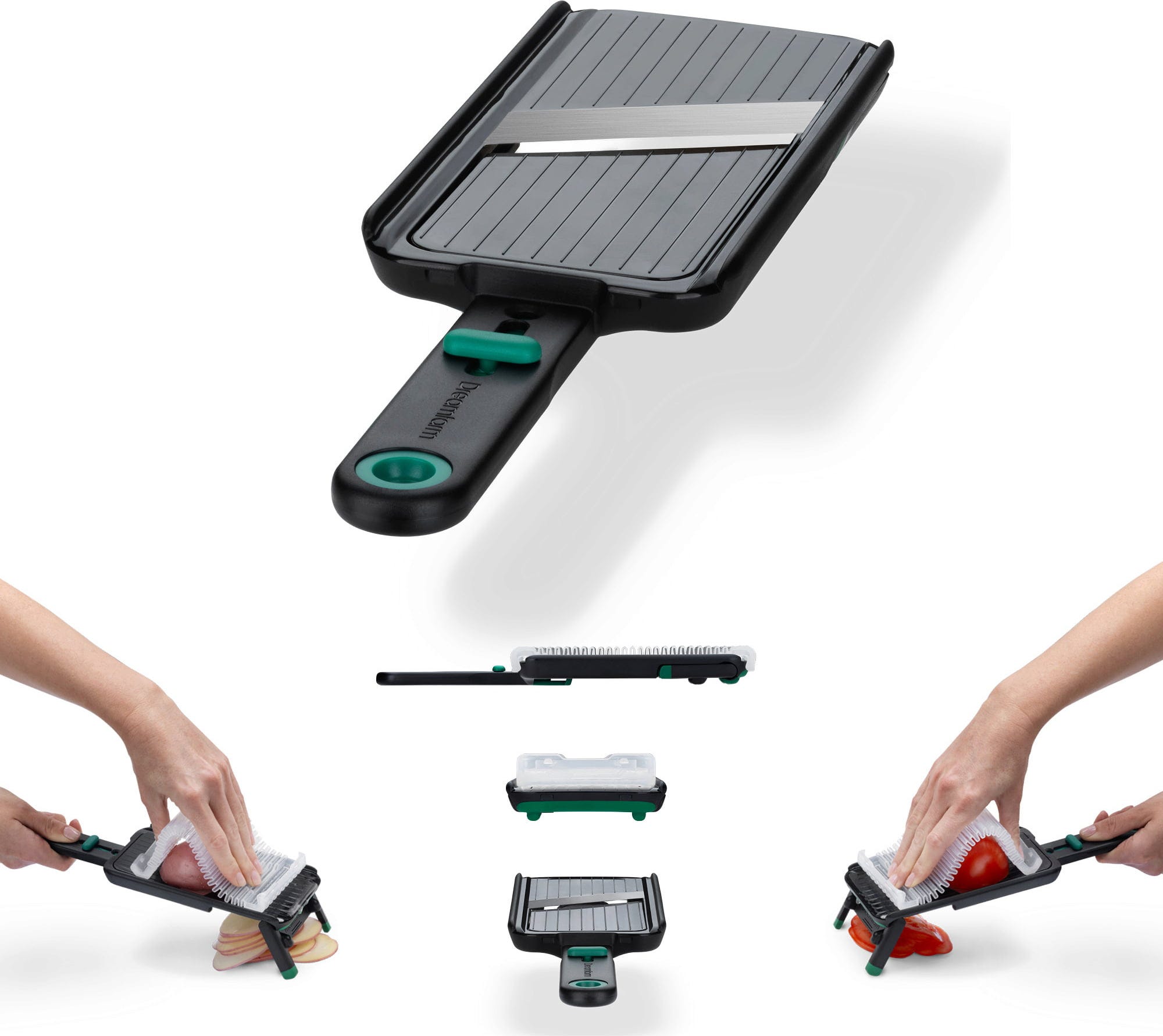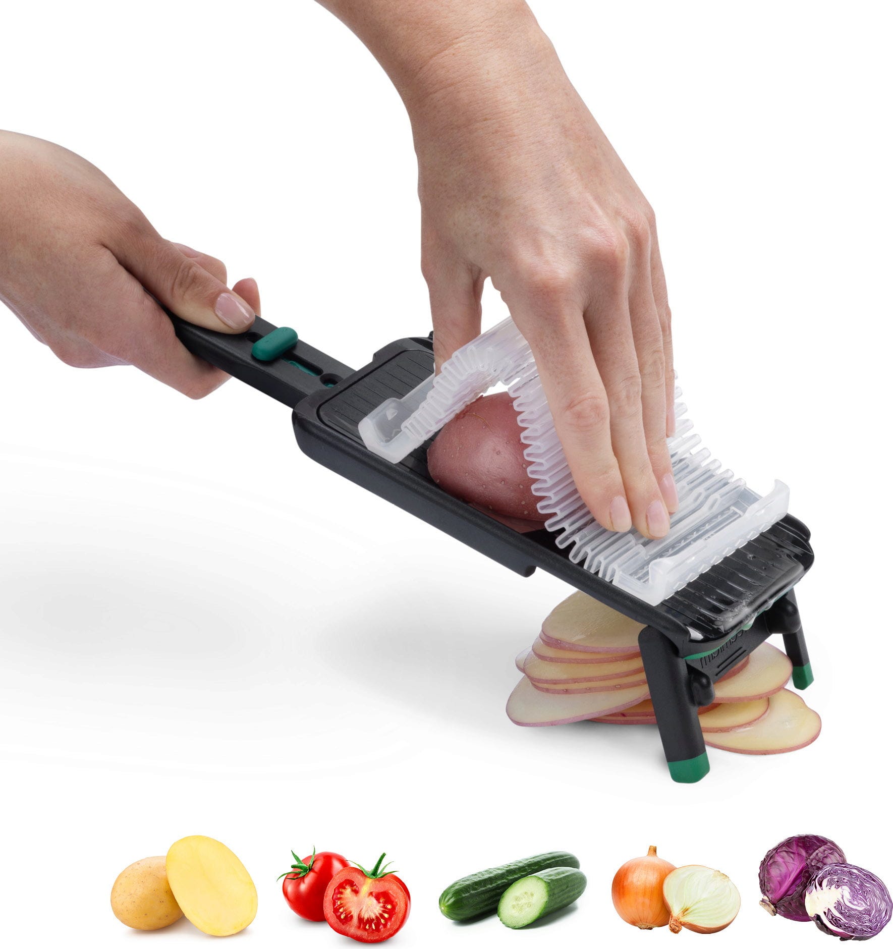 Sallad, potatis och färska grönsaker kan nu skivas snabbare och säkrare än någonsin. Nocutu Mandolin från Dreamfarm har ett rakbladsskarpt blad i rostfritt stål som du enkelt justerar mellan 1 och 3 mm tjocklek. För extra trygghet ingår ett generöst, flexibelt fingerskydd som skyddar mot skador.