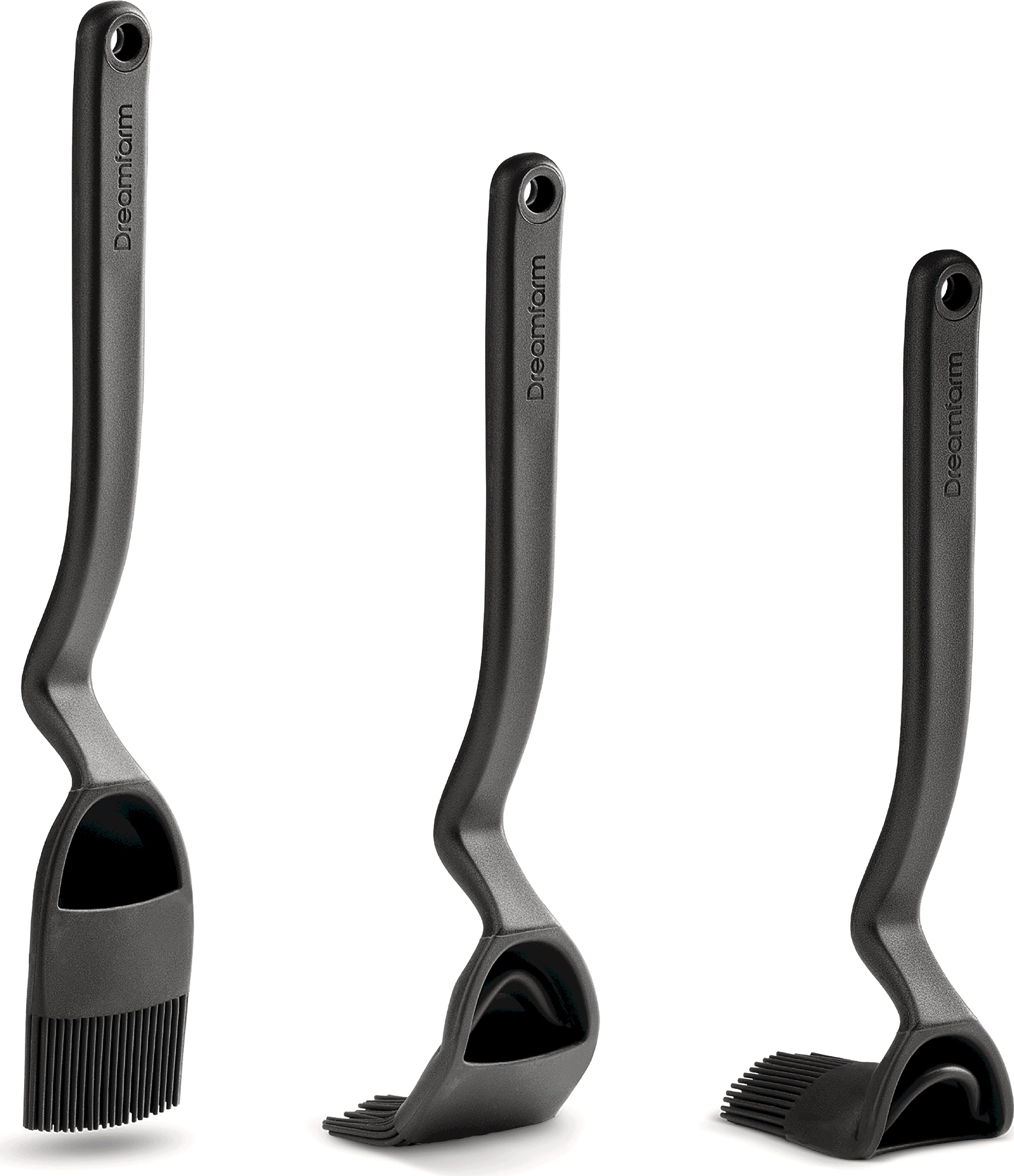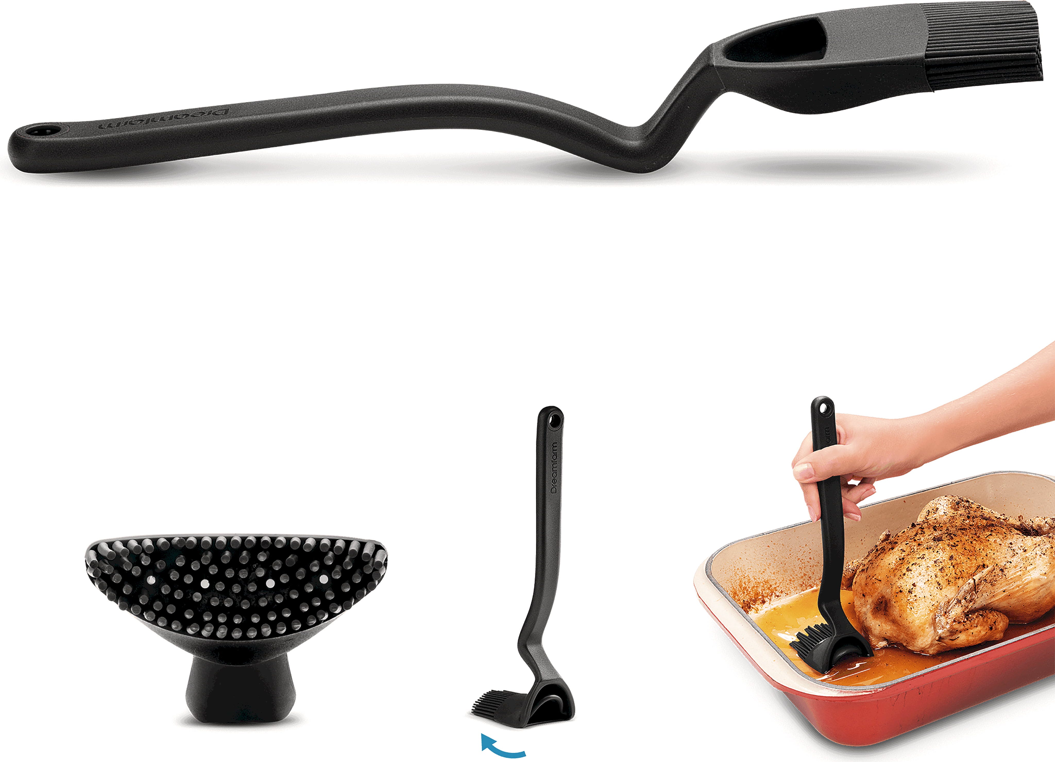 Penseln Brizzle från Dreamfarm är en mycket flexibel silikonpensel som kan mer än vanliga modeller. Tack vare sin unika design fångar den enkelt upp såsrester från pannor eller plåtar och böjer sig smidigt vid pensling för att fördela vätska exakt.