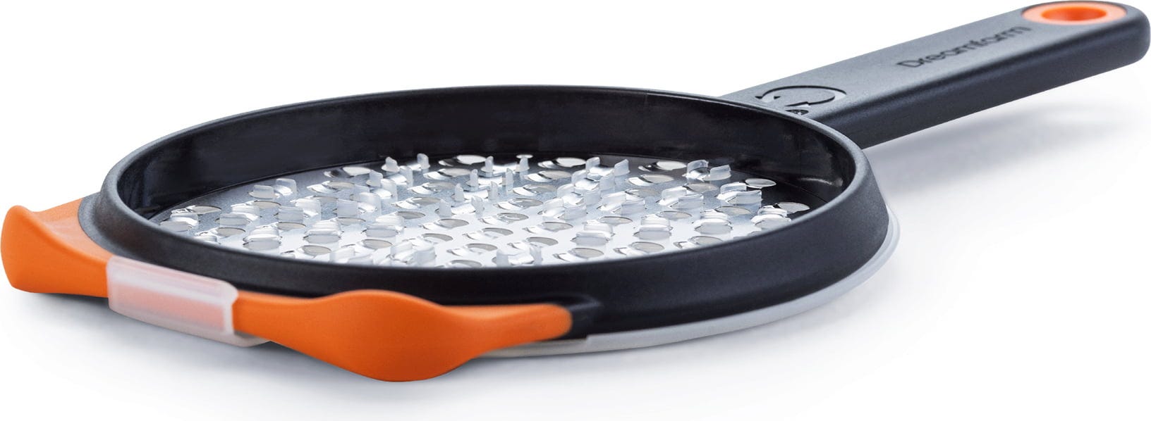 Med rivjärnet Ograte från Dreamfarm förvandlar du även större mängder kål, lök eller ost till perfekta strimlor på rekordtid. Hemligheten ligger i den generösa, runda rivytan som tillsammans med dubbelsidiga blad gör arbetet extra effektivt.