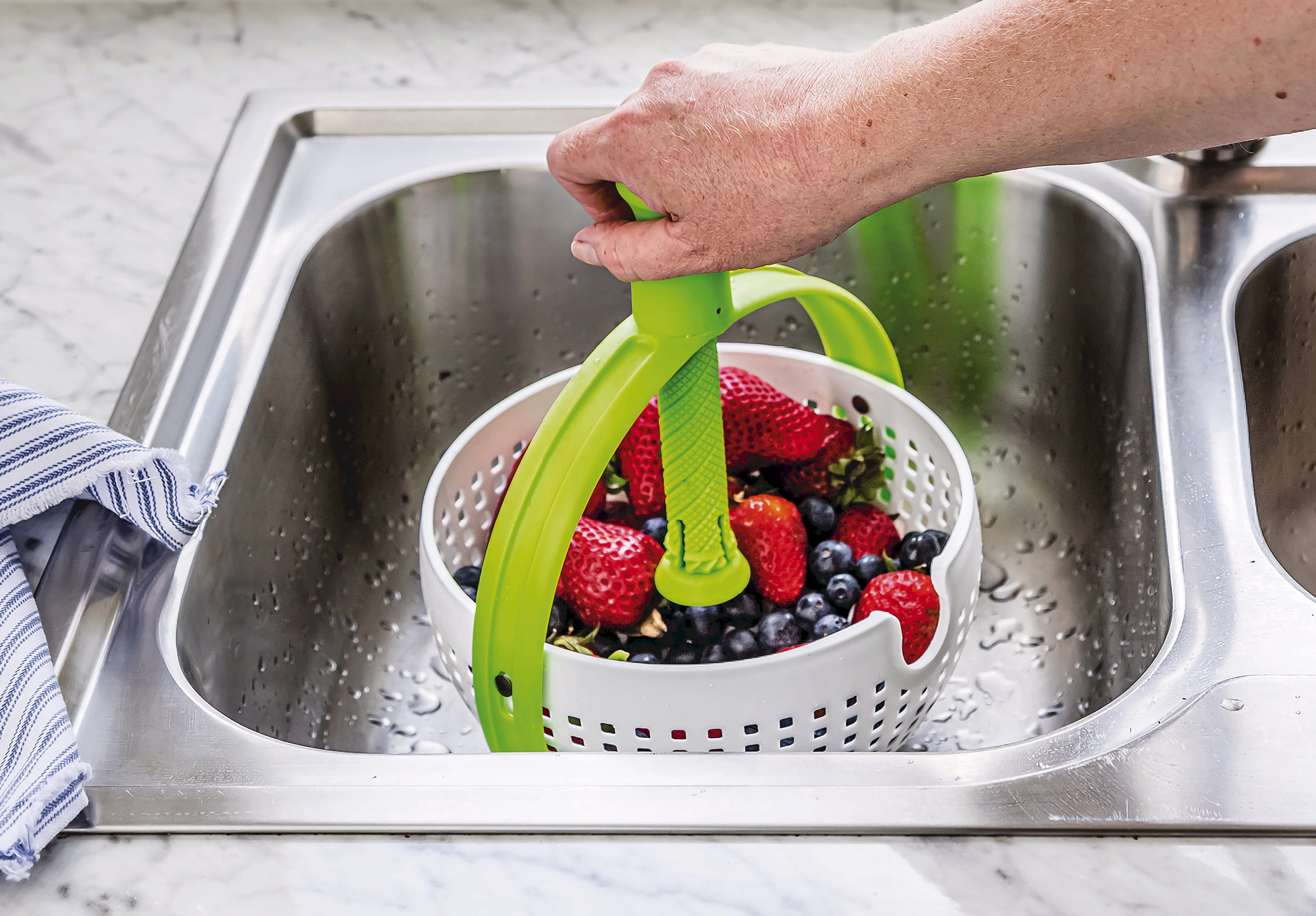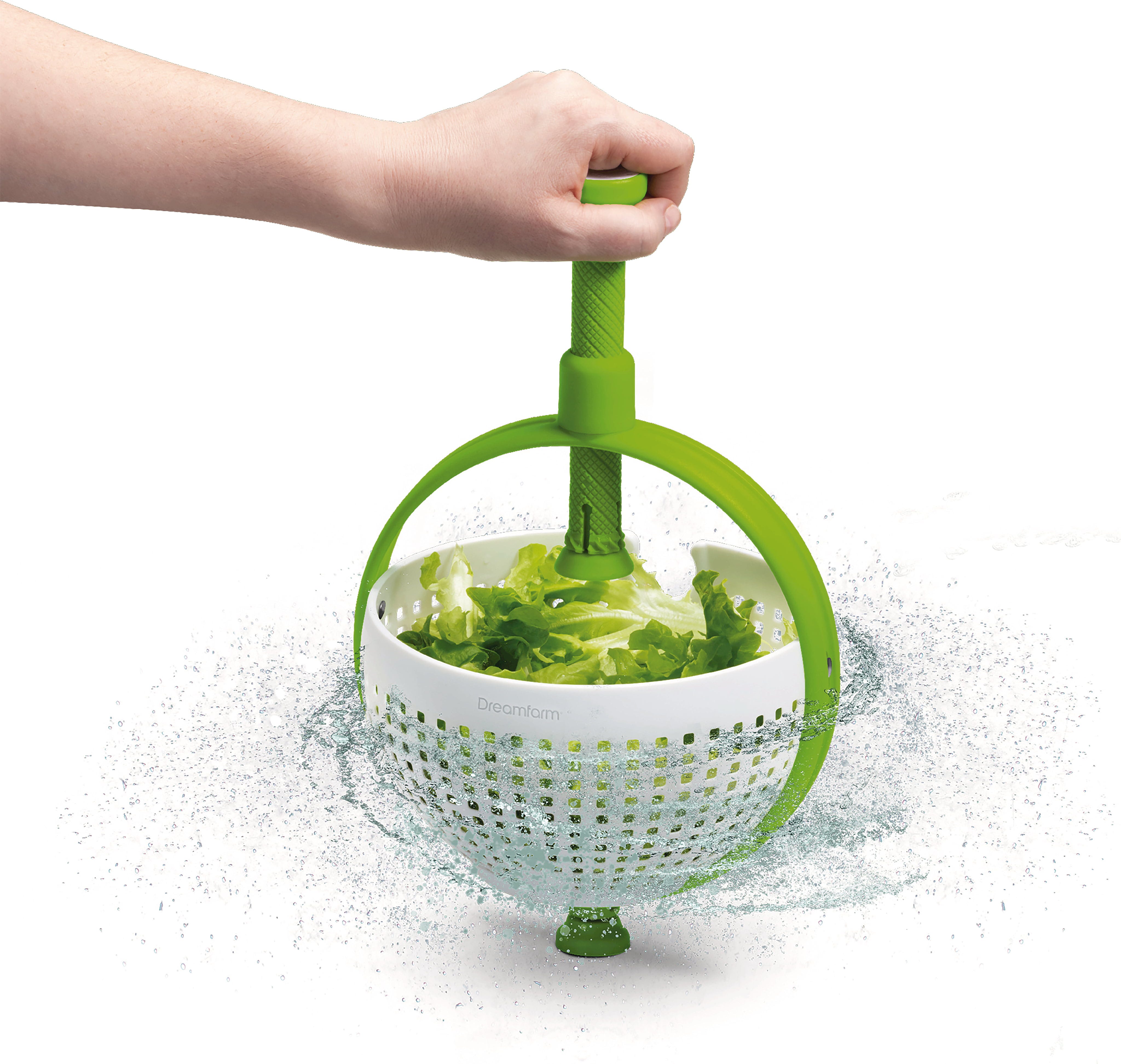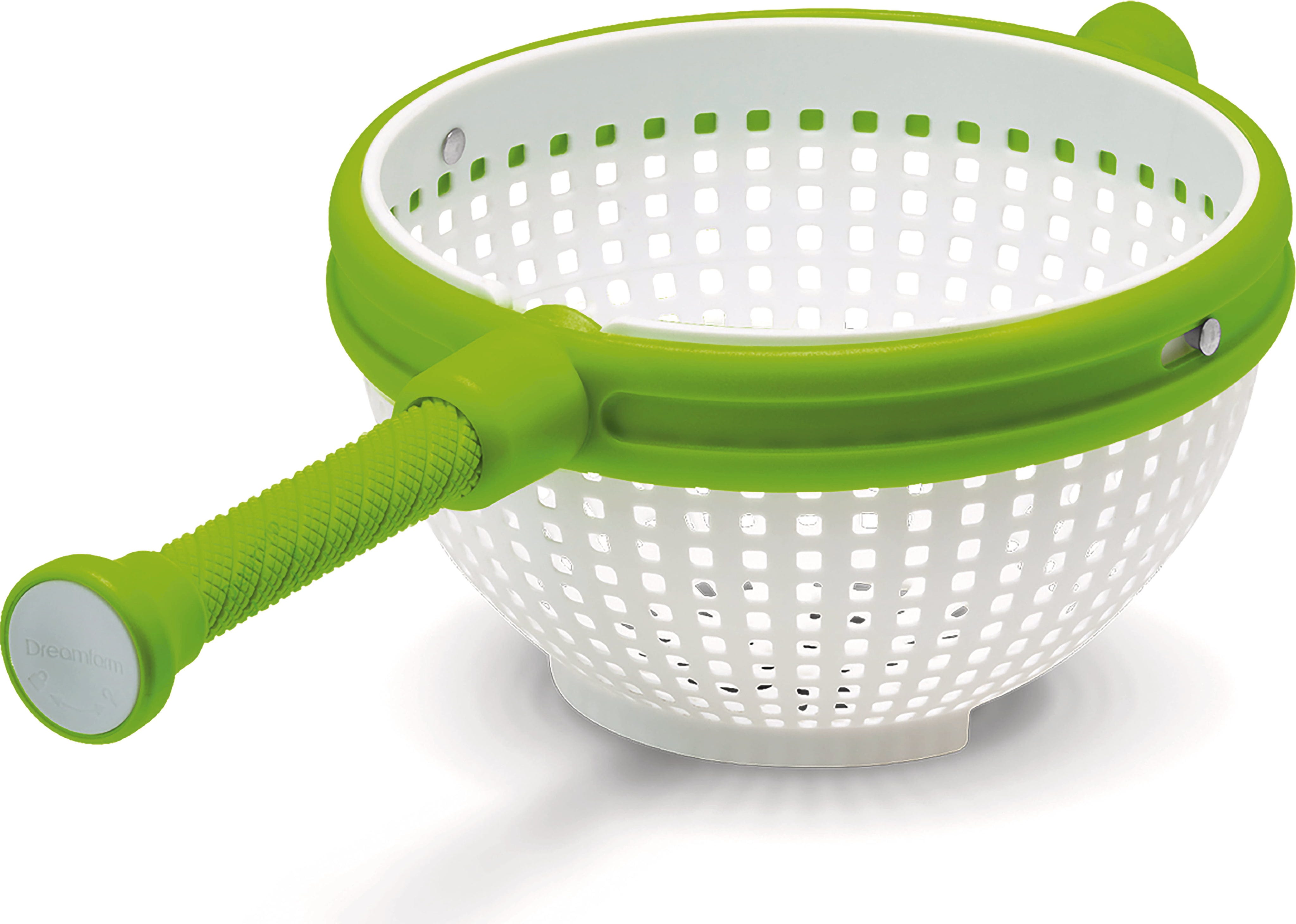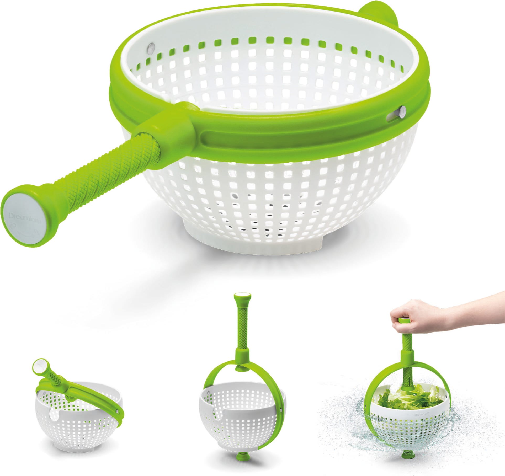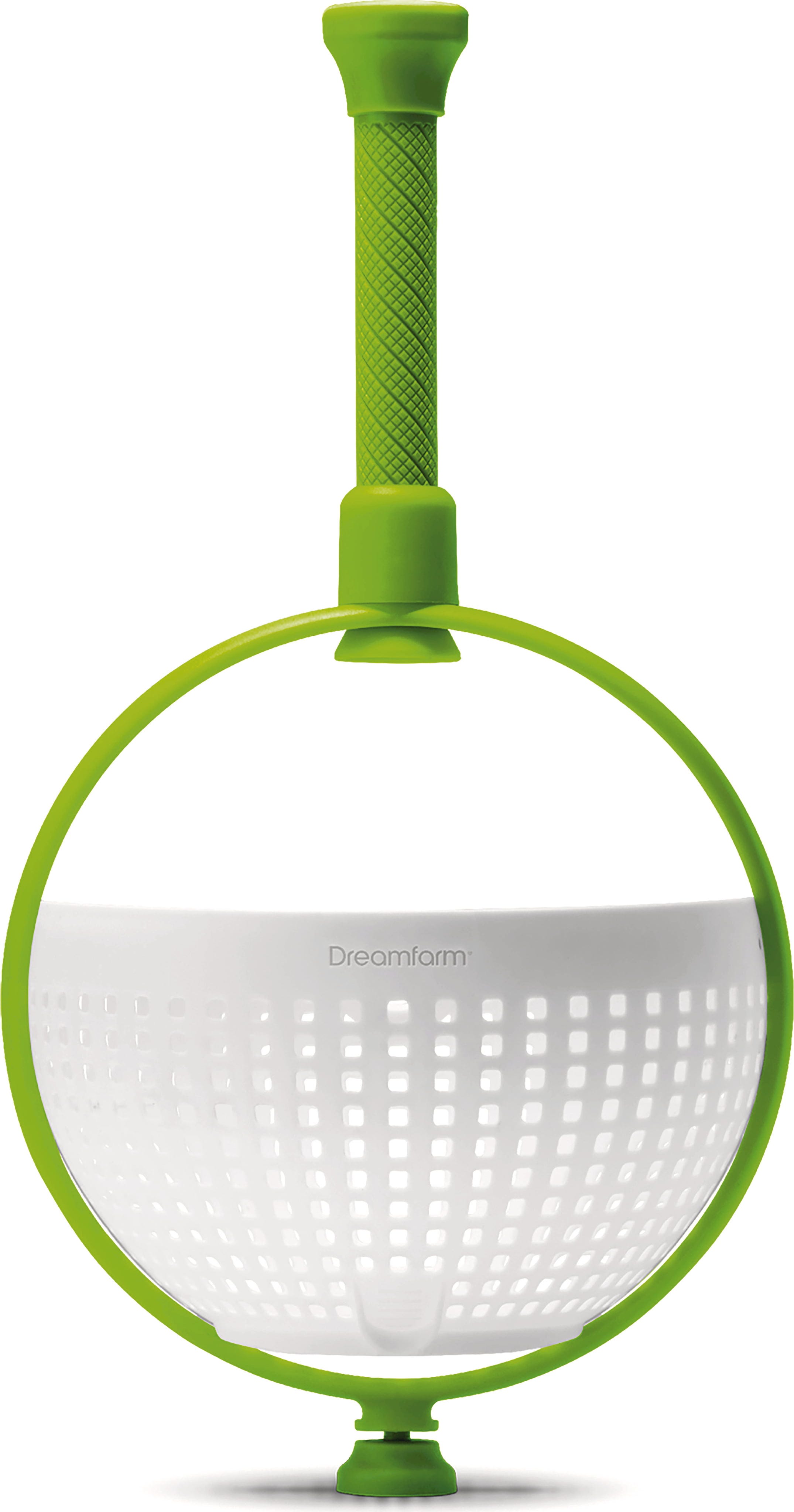 Med salladsslungan Spina från Dreamfarm får du ett smart 2-i-1-verktyg i köket som kombinerar sil och slunga i ett. Tack vare den halkfria foten kan du torka sallad, grönsaker eller bär direkt i diskhon i hög hastighet, medan de upphöjda sidorna ser till att innehållet stannar kvar i skålen.