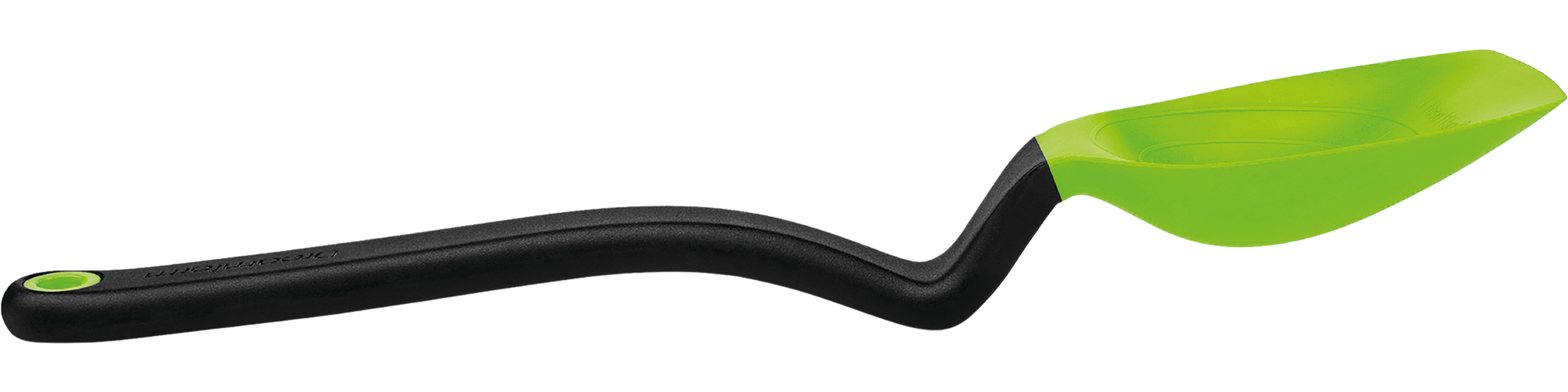 Med skeden Supoon från Dreamfarm får du ett riktigt multiverktyg vid spisen som kombinerar omrörning, skopning, mätning och urskrapning i ett och samma redskap. Tack vare det flexibla silikonhuvudet når du enkelt varje hörn i kastruller och stekpannor och skrapar ur allt utan rester, samtidigt som materialet skonar ditt köksredskap.