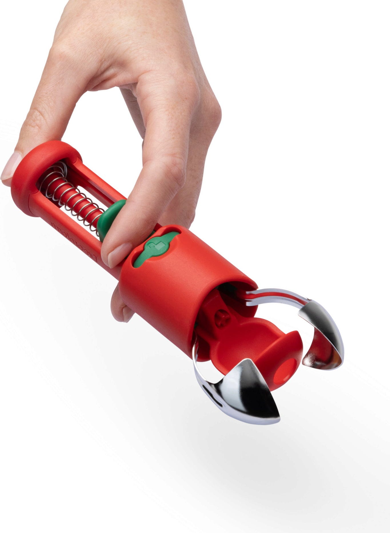 Med Hullapit från Dreamfarm får du en genial 3-i-1-urkärnare till köket som gör det enkelt att ta bort stjälkar från jordgubbar och snabbt kärna ur körsbär eller oliver. De precisa, koniskt formade bladen i rostfritt stål tar även bort missfärgade partier på bär extra rent, medan den fjäderbelastade tryckmekanismen för kärnorna direkt till den integrerade uppsamlingskammaren.