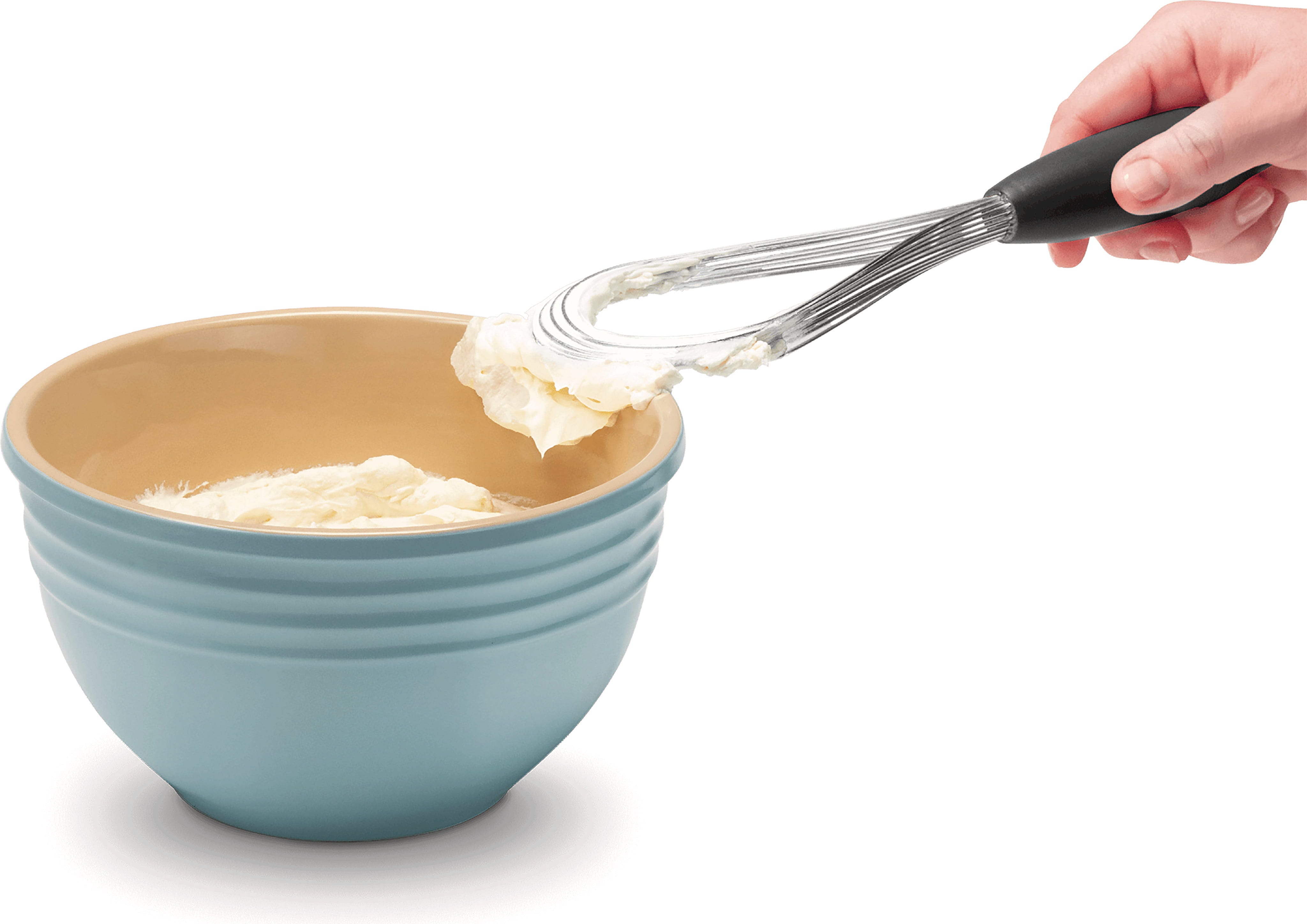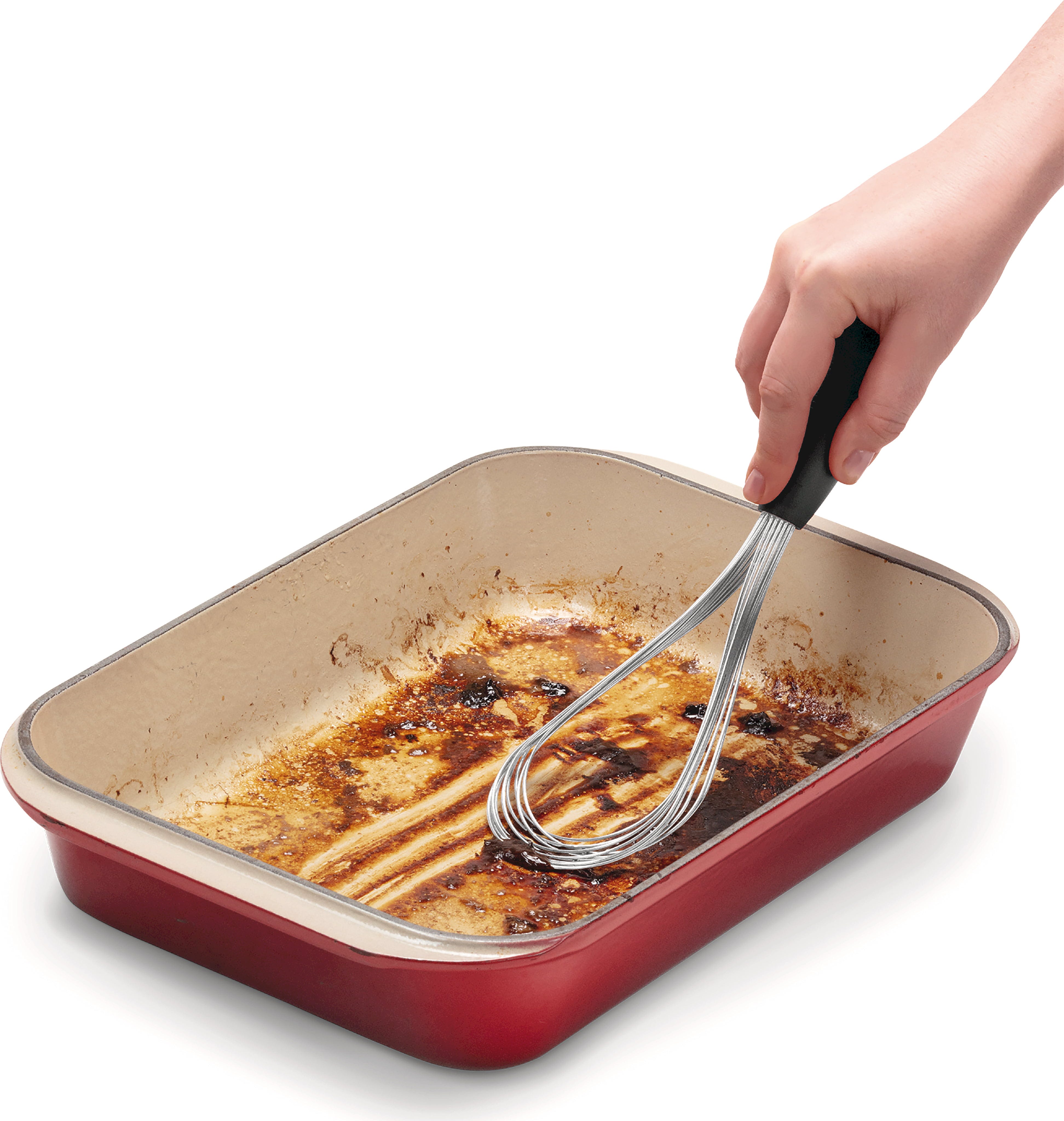 Vispen Flisk från Dreamfarm är en innovativ visp som enkelt förvandlas till tre olika former genom att du vrider på handtaget. I ballongläget vispar du grädde luftigt, medan det platta läget passar perfekt för såser och användning i grunda stekpannor. Efter matlagningen kan den fällas helt platt, vilket gör den mycket platsbesparande i lådan och förhindrar att den fastnar i andra redskap.