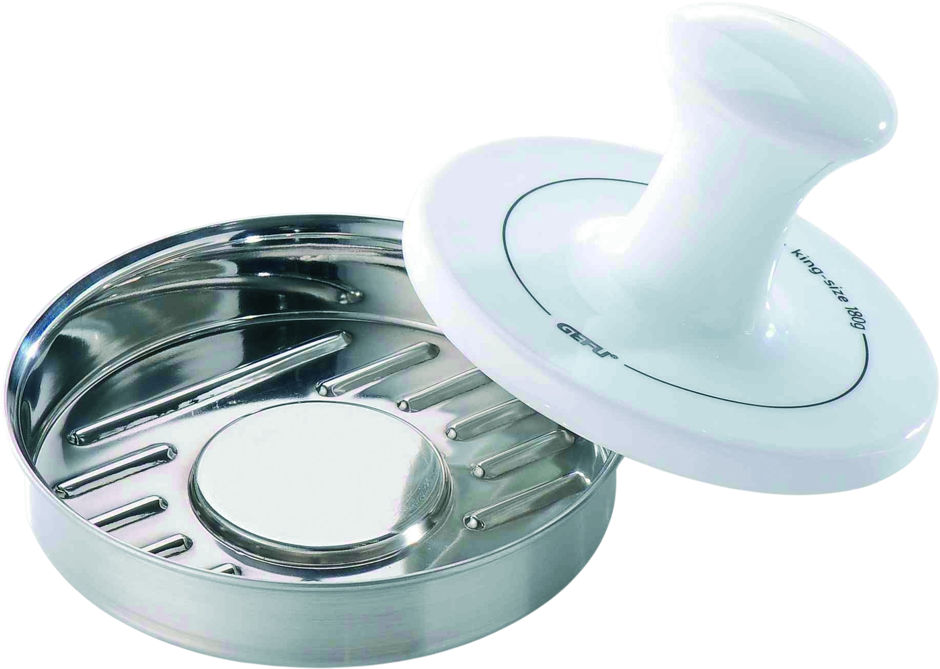 Den smarta kupningen i botten hjälper biffen att hålla formen, och de integrerade ribborna skapar snygga ränder som dessutom förkortar tillagningstiden – för snabb och smakrik matglädje! Oavsett om du gör klassiska 120 g-burgare eller rejäla 180 g-portioner ger denna press jämna och snygga resultat. Högkvalitativt rostfritt stål och porslin garanterar lång hållbarhet och enkel rengöring i diskmaskin.