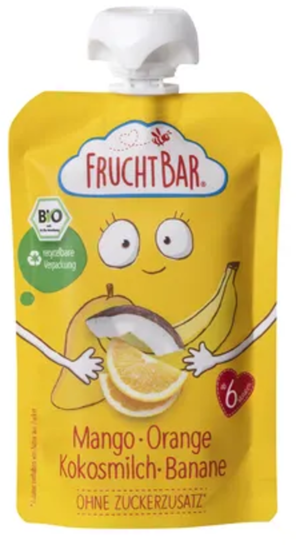 FRUCHTBAR Mango, Apelsin, Kokosmjölk & Pressad Banan Ekologisk, 100 g