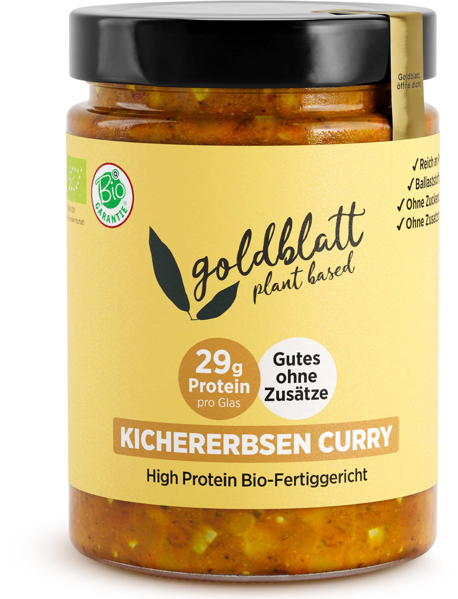 Exotisk smak möter krämig rikedom. Goldblatt kombinerar mör tofu från Österrike med krispiga kikärtor och aromatiska kryddor för att skapa en smakrik, proteinrik upplevelse. När den värms upp får den en rundad smak som passar perfekt att kombinera med ris, pasta eller dina favoritflingor.