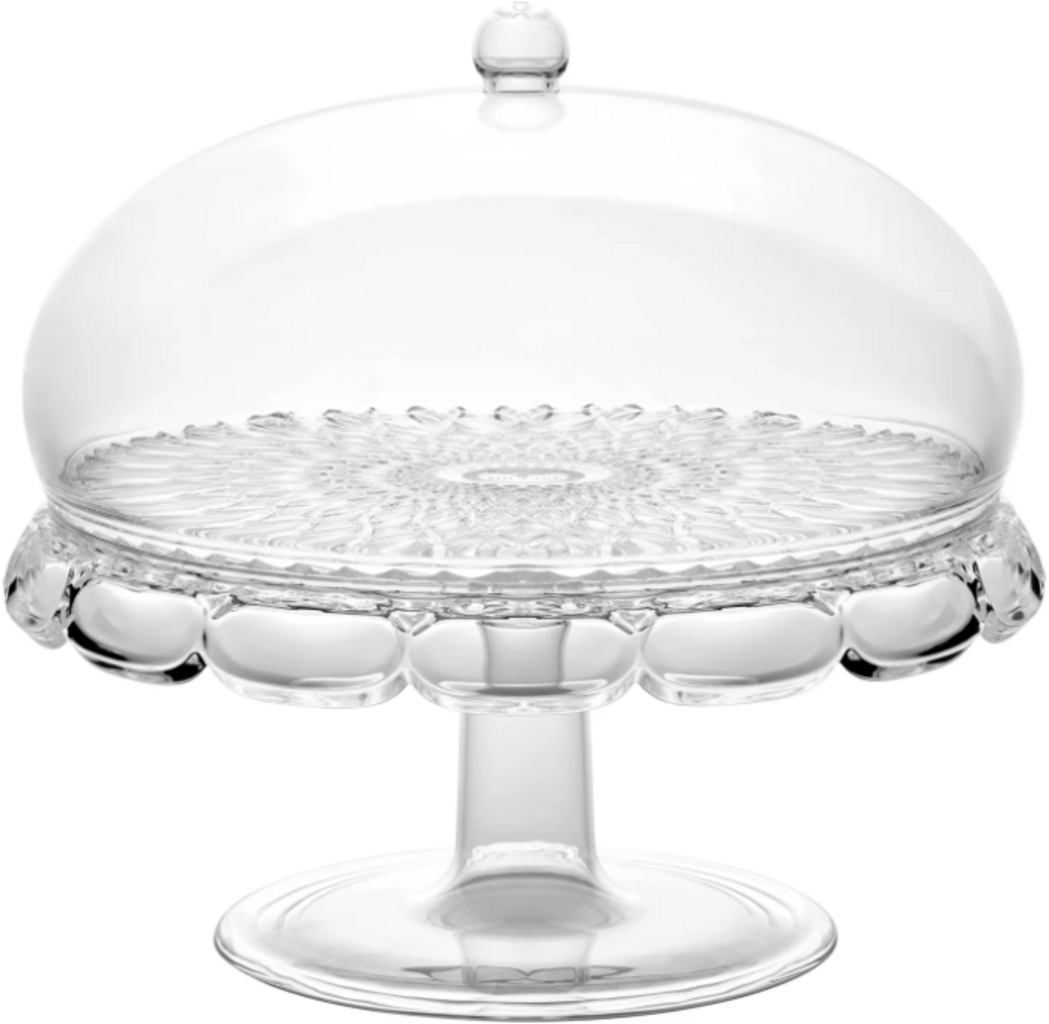 Tårtfatet „Vanity“ med fot och kupa kombinerar elegant design med praktisk funktion. Oavsett om det gäller tårtor, bakverk eller små tilltugg hålls innehållet fräscht tack vare den transparenta kupan och presenteras samtidigt på ett stilfullt sätt. Perfekt för speciella tillfällen eller vardagens njutning, hållbart producerad och ett riktigt blickfång på varje bord