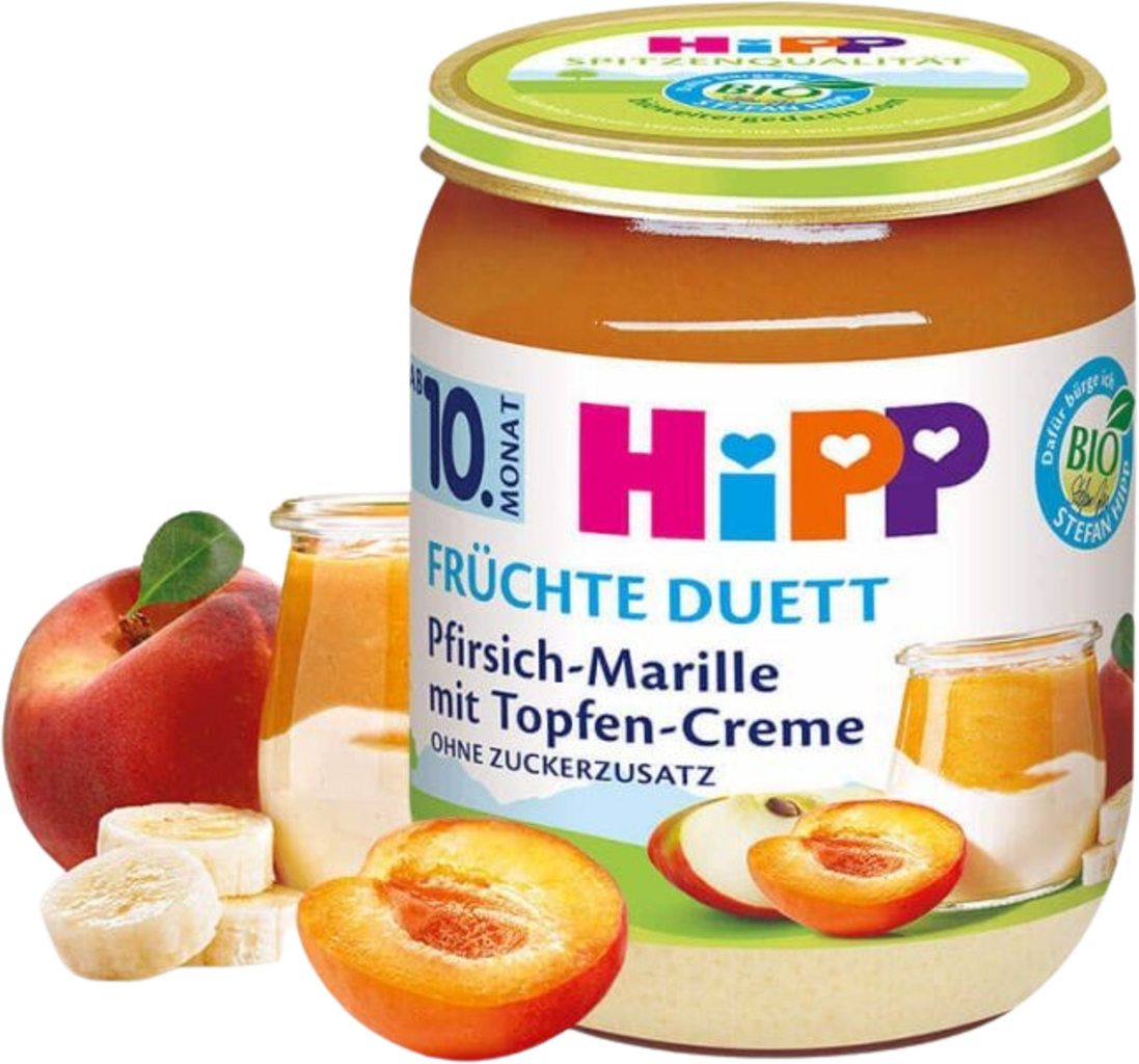 HiPP Fruktduett Persika-Aprikos med Kvargkräm, Eko, 160 g