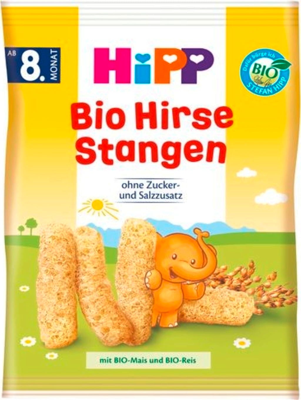 De ekologiska hirspinnarna är gjorda av glutenfria, puffade ekologiska spannmål och är ett gott mellanmål för barn från 8 månaders ålder!