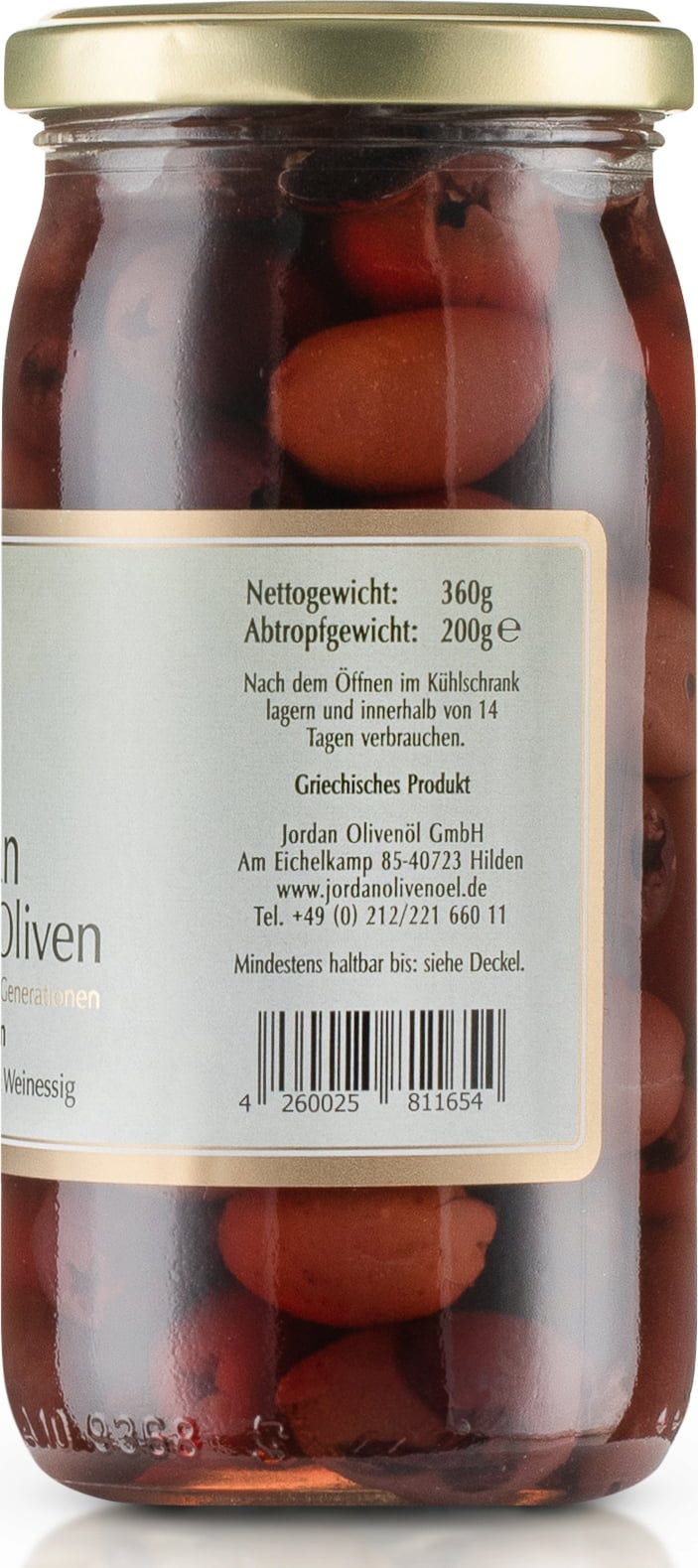 | Ansvarigt livsmedelsföretag: | Jordan Olivenöl GmbH, Landwehr 25, 42697, Solingen, Tyskland, www.jordanolivenoel.de |