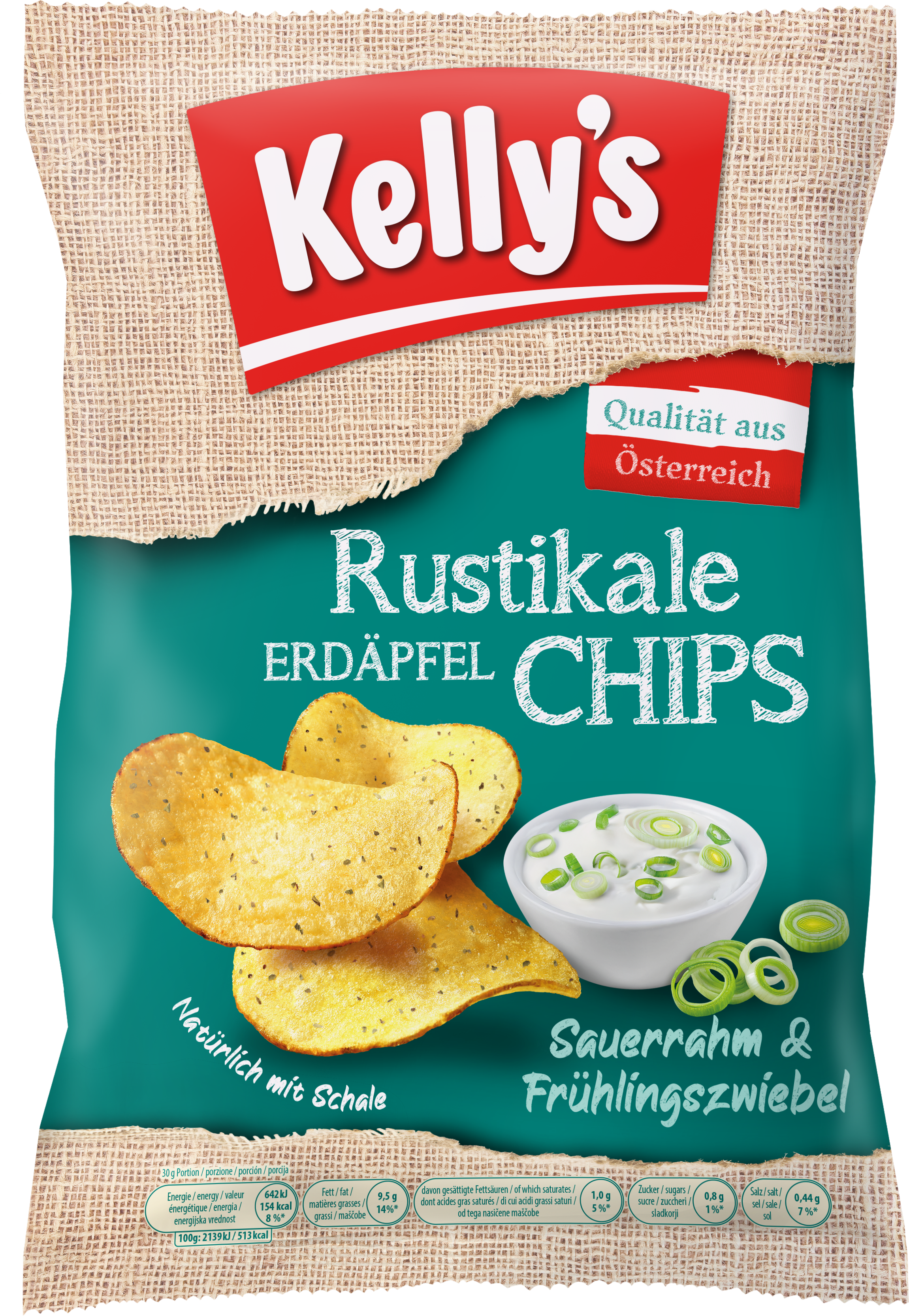Kelly's Rustika Potatischips Gräddfil & Salladslök, 110 g