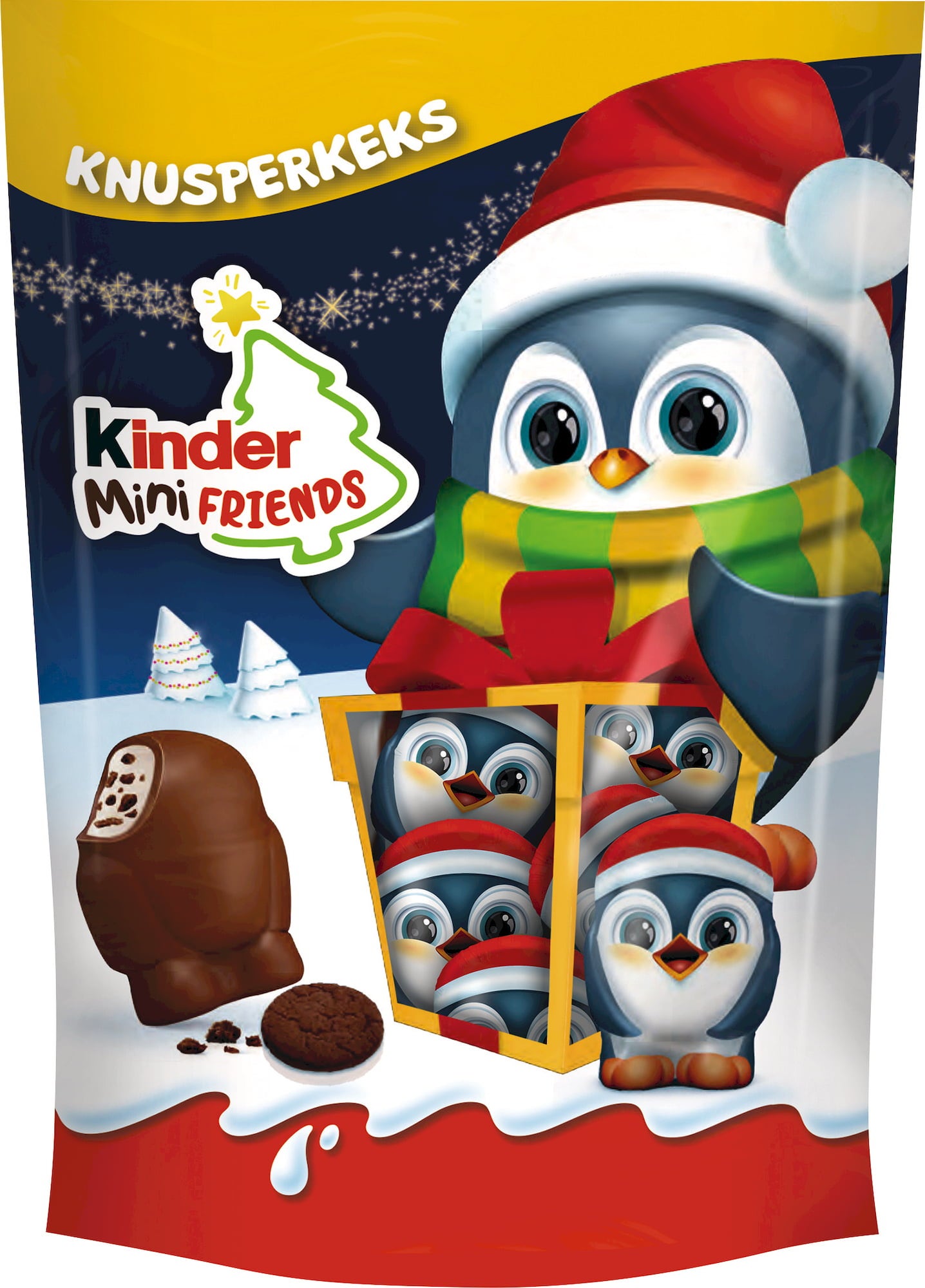 Kinders Mini Friends glädjer både unga och gamla - antingen under granen, vid julbordet eller till och med i en tomtepåse! Den fina mjölkchokladen, fylld med mjölkgrädde och knapriga kexbitar, smälter i munnen och förtrollar dessutom med en söt pingvindesign.