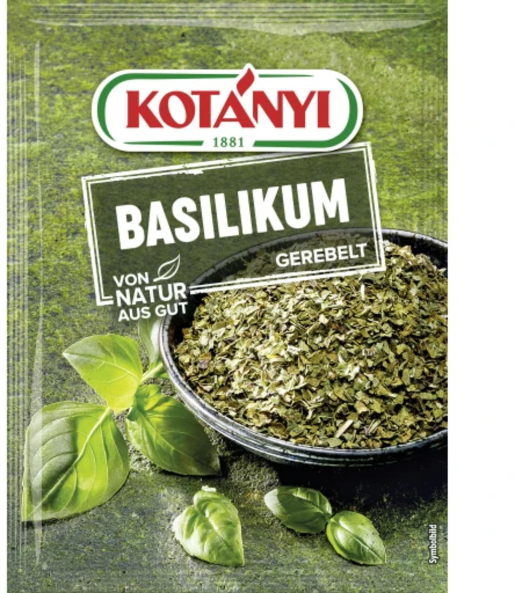 Basilika med smak av kryddnejlika, peppar och mynta är oumbärlig i medelhavsköket. Kotányi-basilikan torkas särskilt försiktigt och förblir rik på eteriska oljor, som utvecklas som om de vore färska när du förbereder rätter.