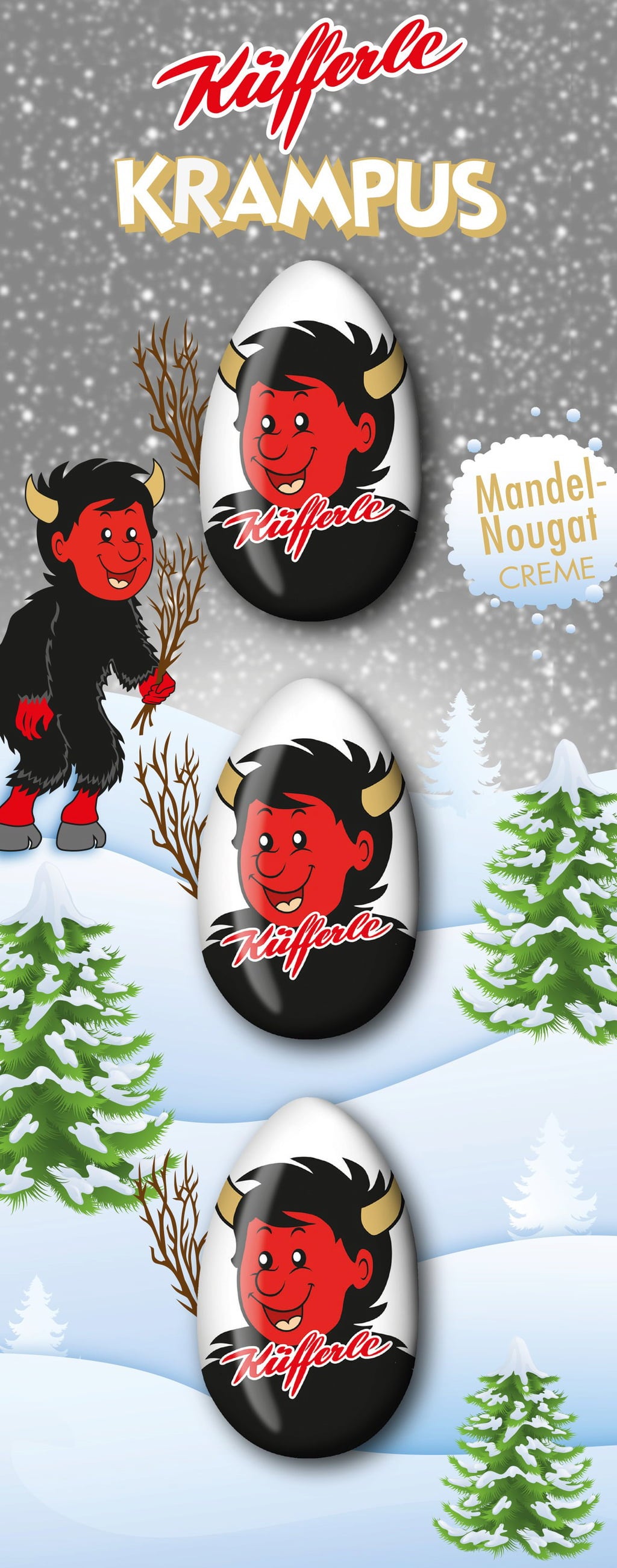 Perfekt som en liten present till Krampusen - mjölkchokladen Krampus från Küfferle är fylld med delikat mandelnougatkräm och smakar oemotståndligt krämigt och gott.